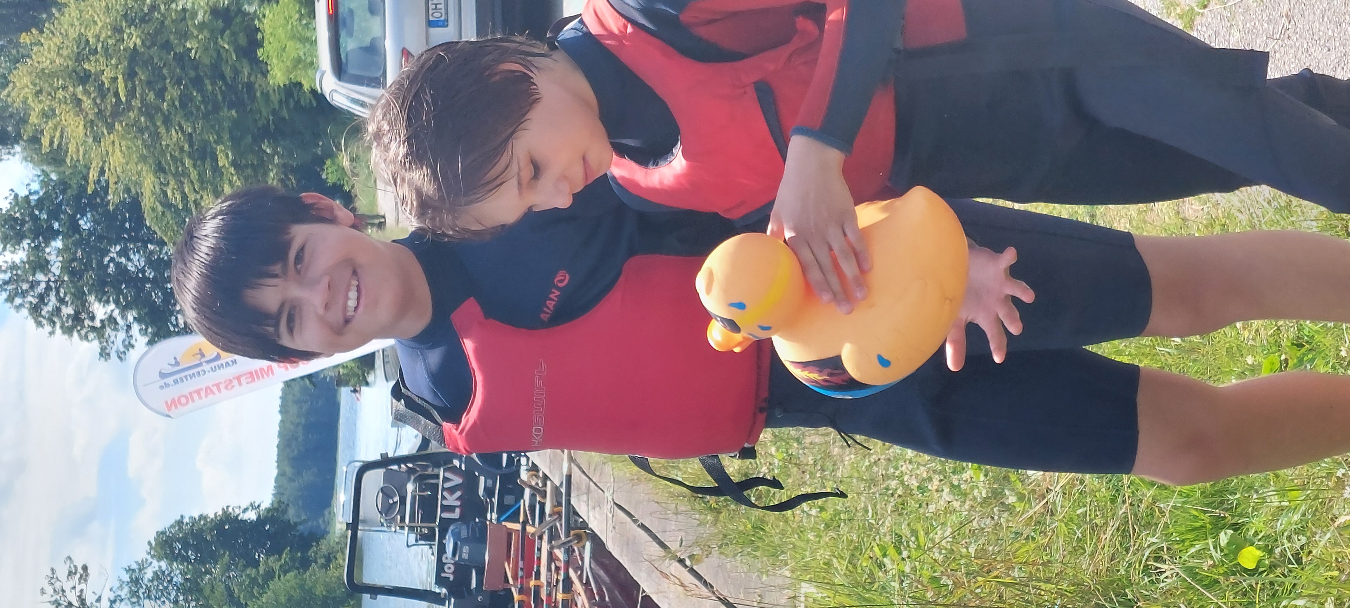 2 Teams (diesmal Jungs gegen Mädchen) und 2 Maskottchen (unsere roange und rosa Riesenquietscheente) und los gehts. Sieger waren nach Punkten die Mädels, aber gen Geschenke-Schatz konnten sich nachher alle gerecht untereinander aufteilen.
