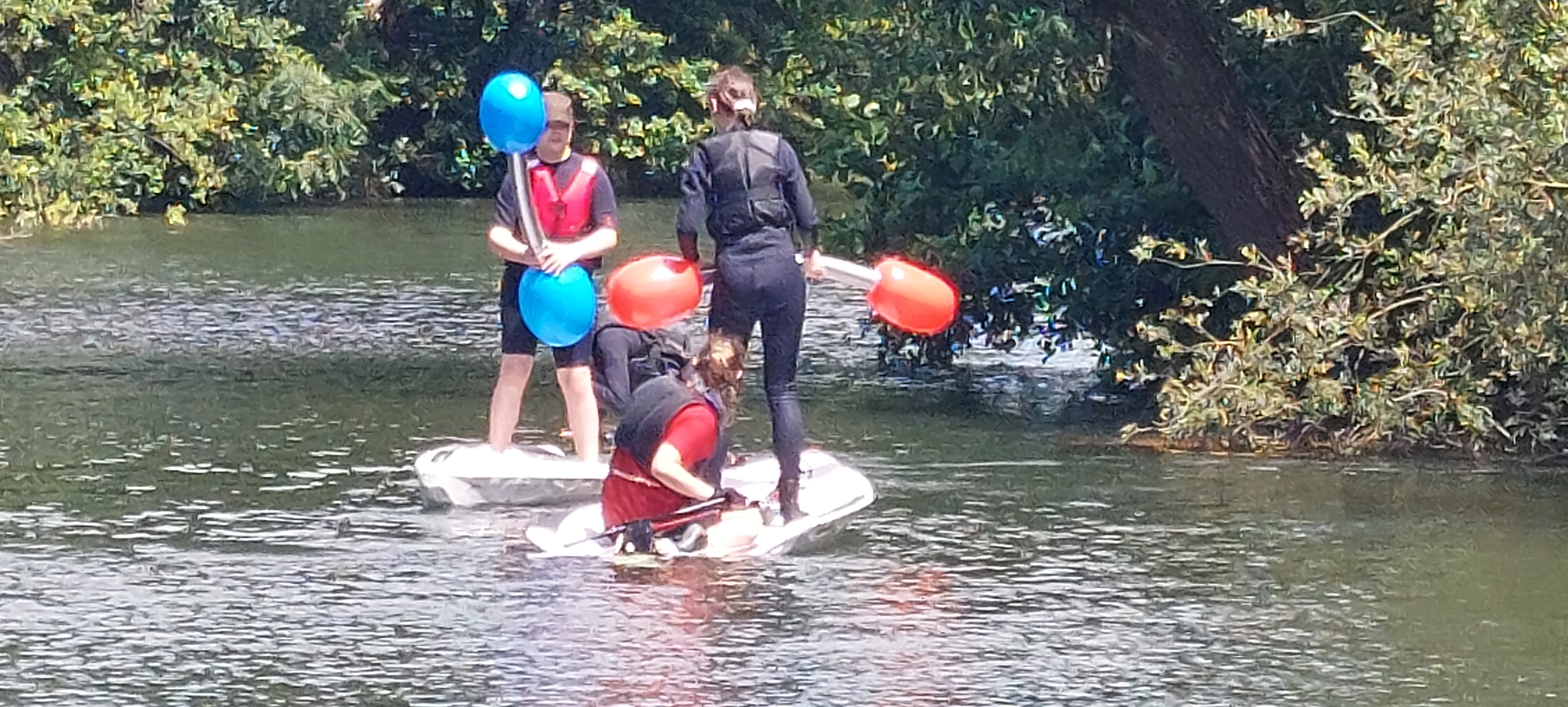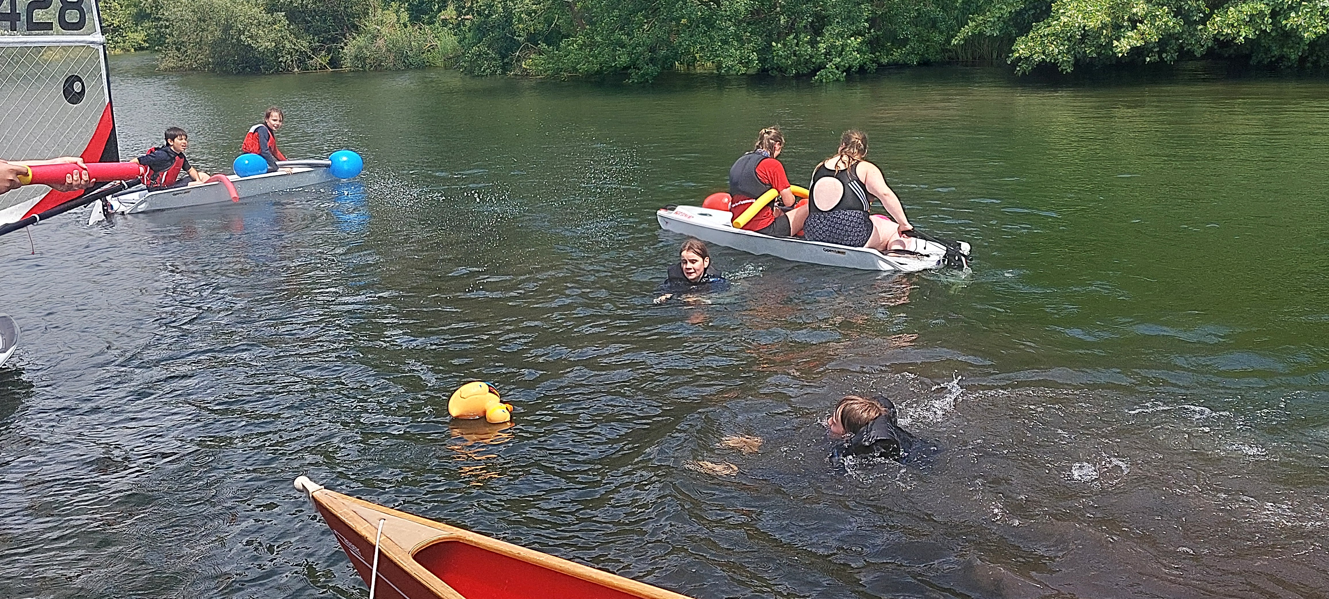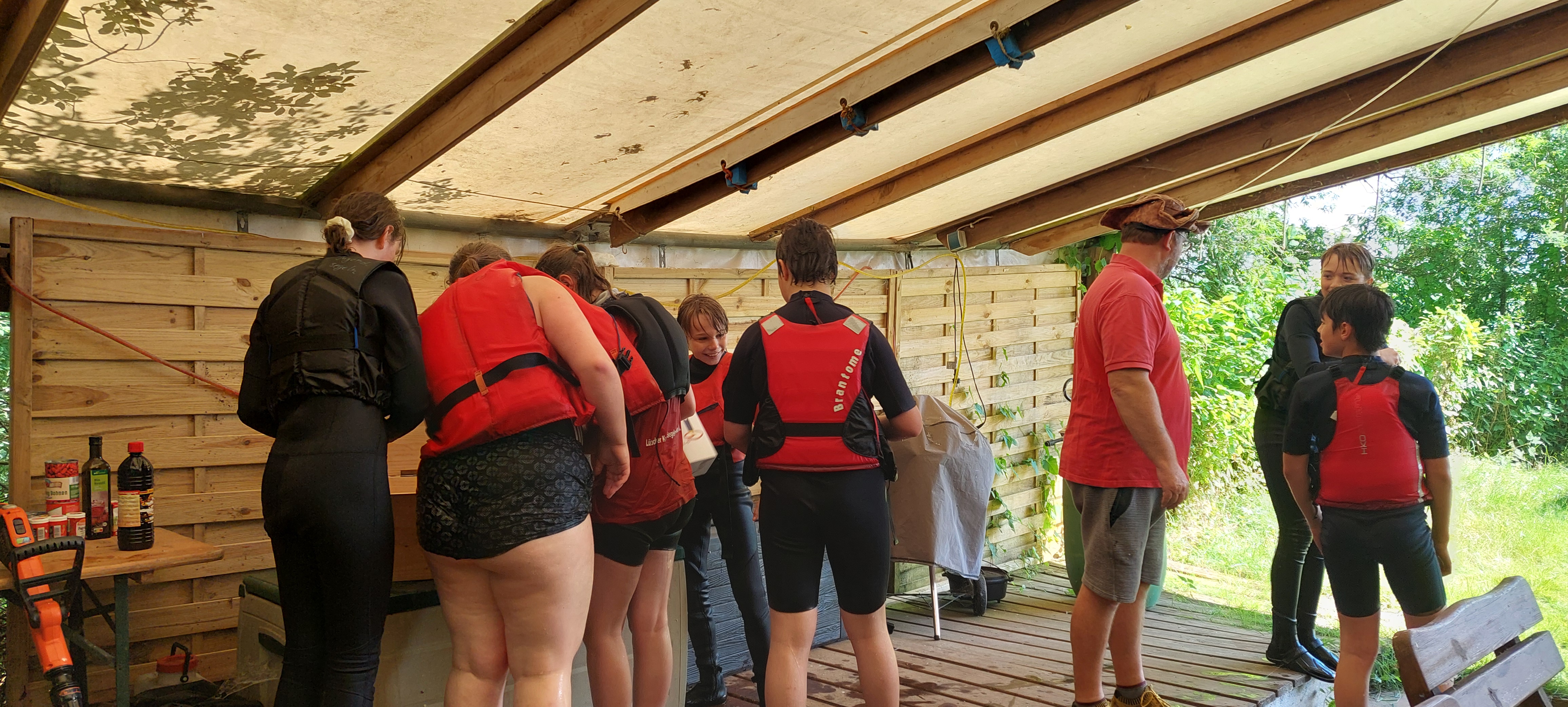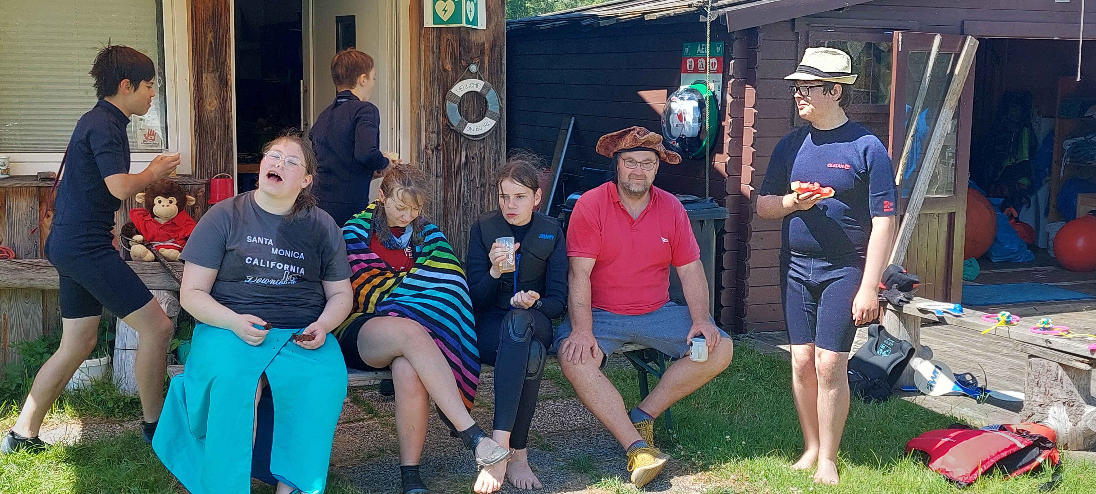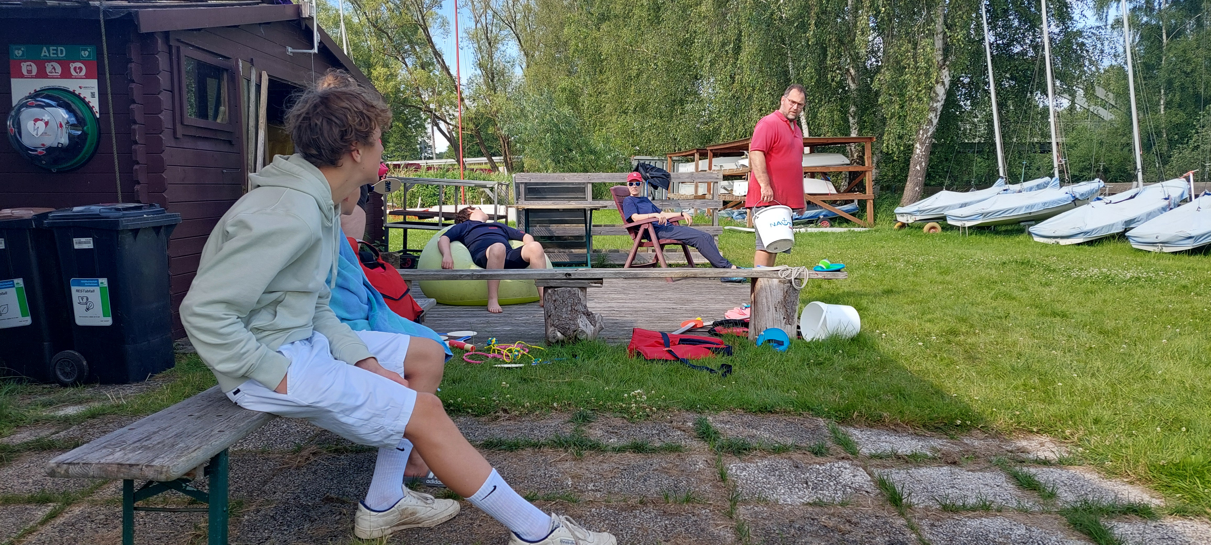 Und das Fazit daraus? Dann nutzen wir die Zeit halt mit noch mehr Spaß und Spiel rund um das Wasser. Mit dem Wetter hatten wir dann auch noch Glück - passend zum Start um 12 Uhr waren Regen und Wolken verzogen und stahlendstem Sonnenschein gewichen. Also war es warm genug für ausgiebige Aktionen in der Wakenitz, dem Ratzeburger See und an Land auf der Jollenwiese am Wakenitzhaus.