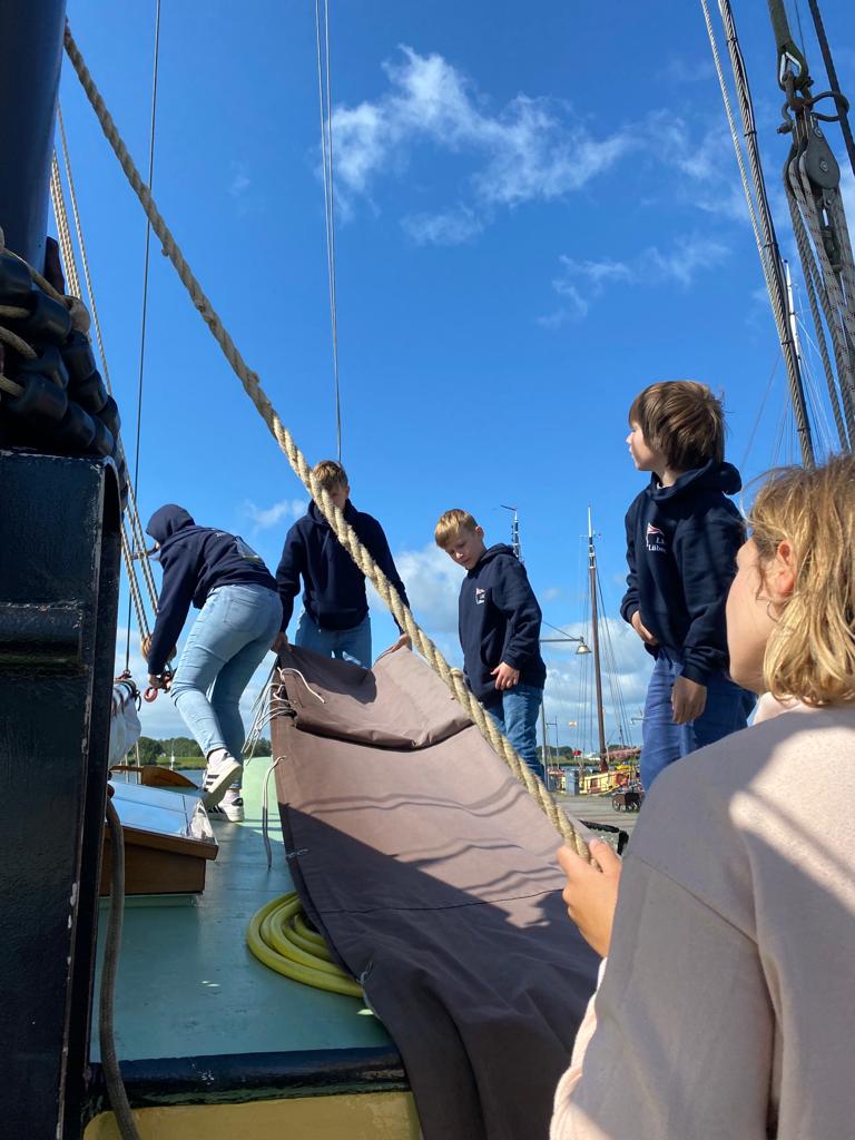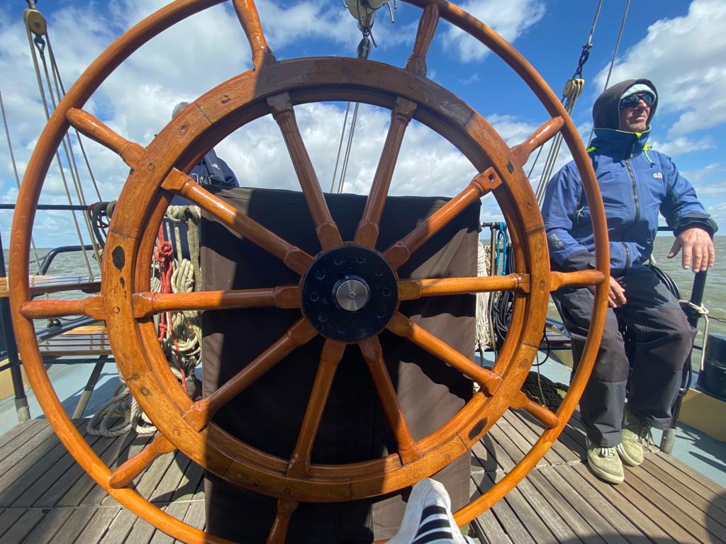 Nach der Einweisung, vor Allem für unsere Neuen, wurde vorbereitend in alle Segel (Fock, Groß und Besan) ein Reff gebunden. So konnte es gut vorbereitet losgehen.