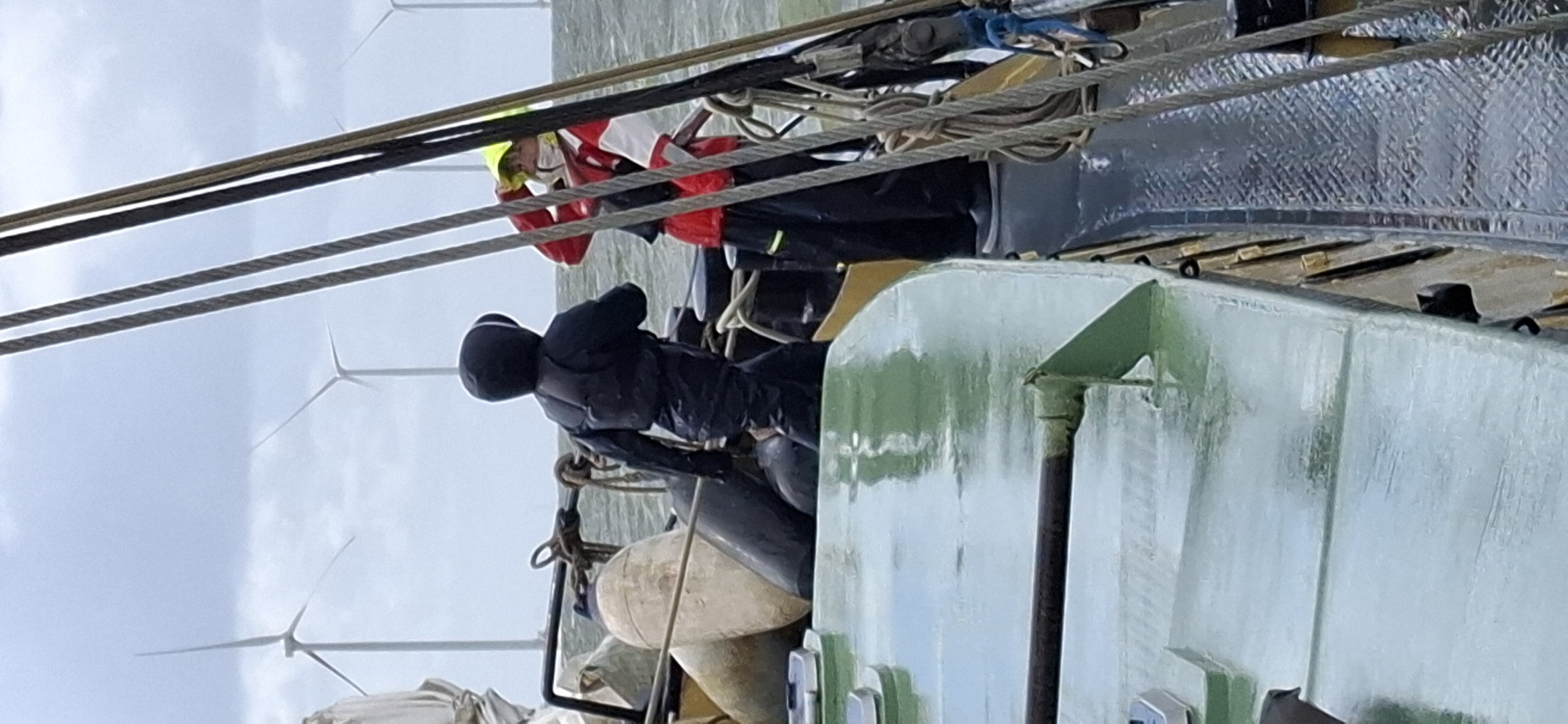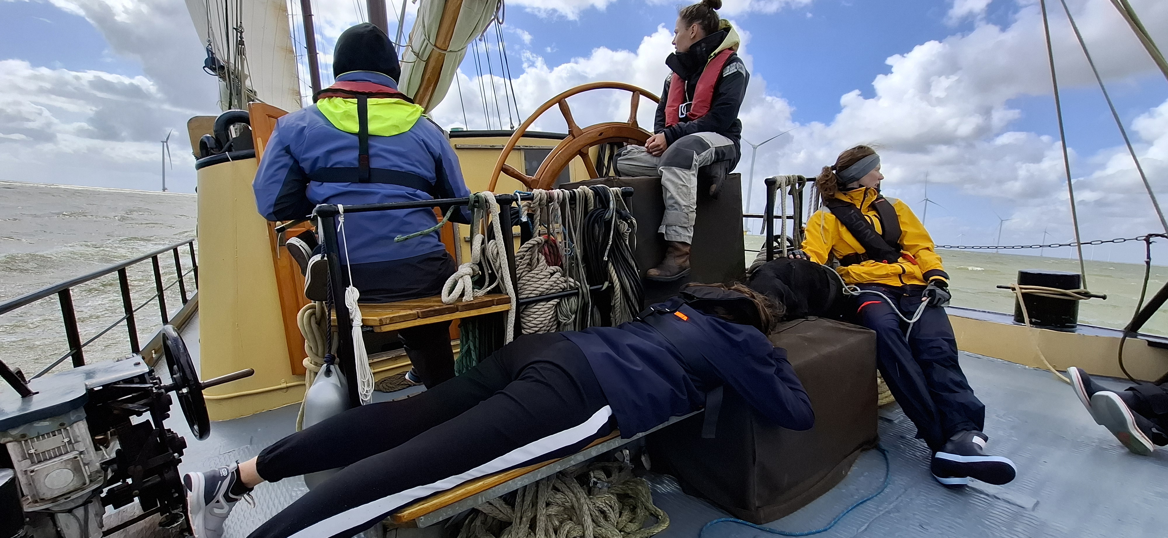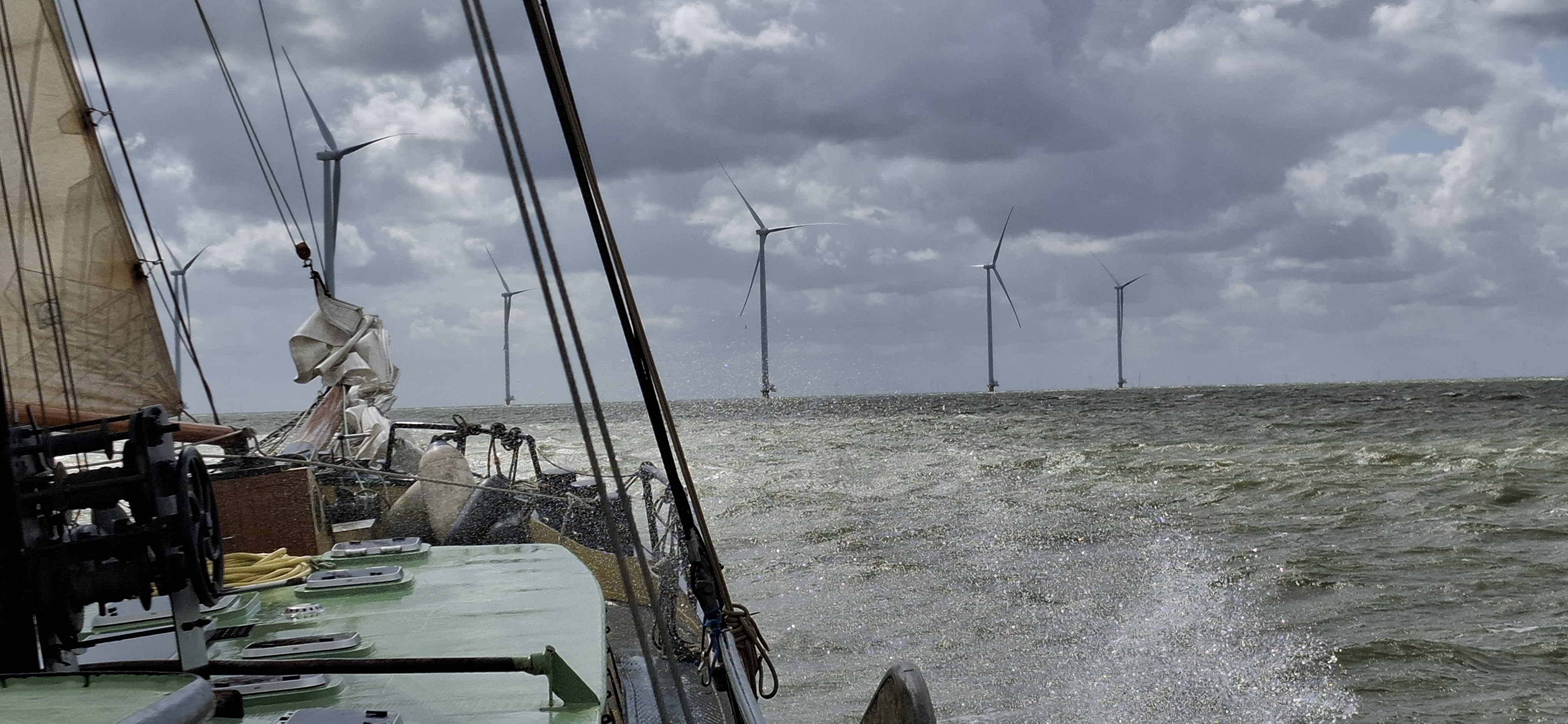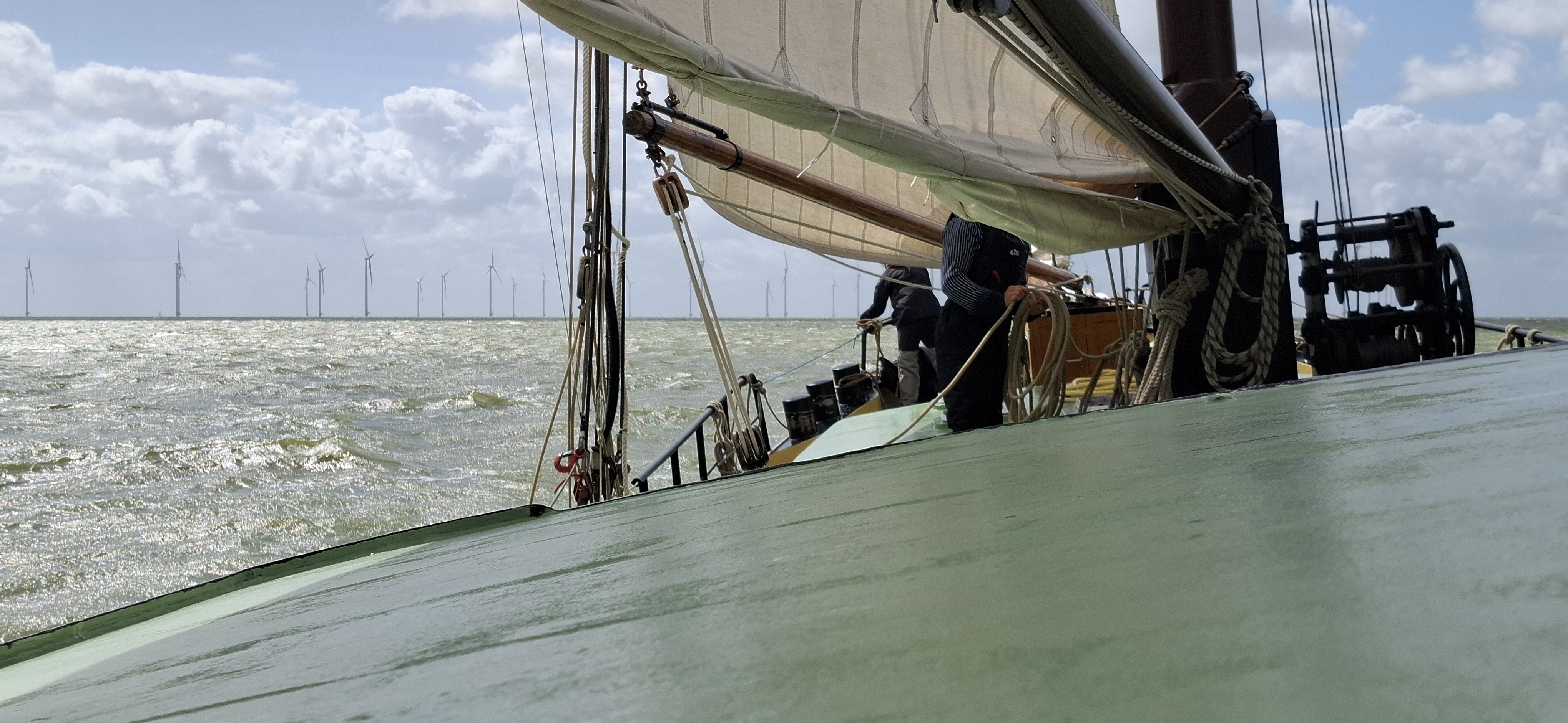 Danach dann wieder Segel setzen. Zuerst wieder erst mal Groß und Fock. Und dann nach dem Durchkreuzen des Windparks auch noch den Besan.