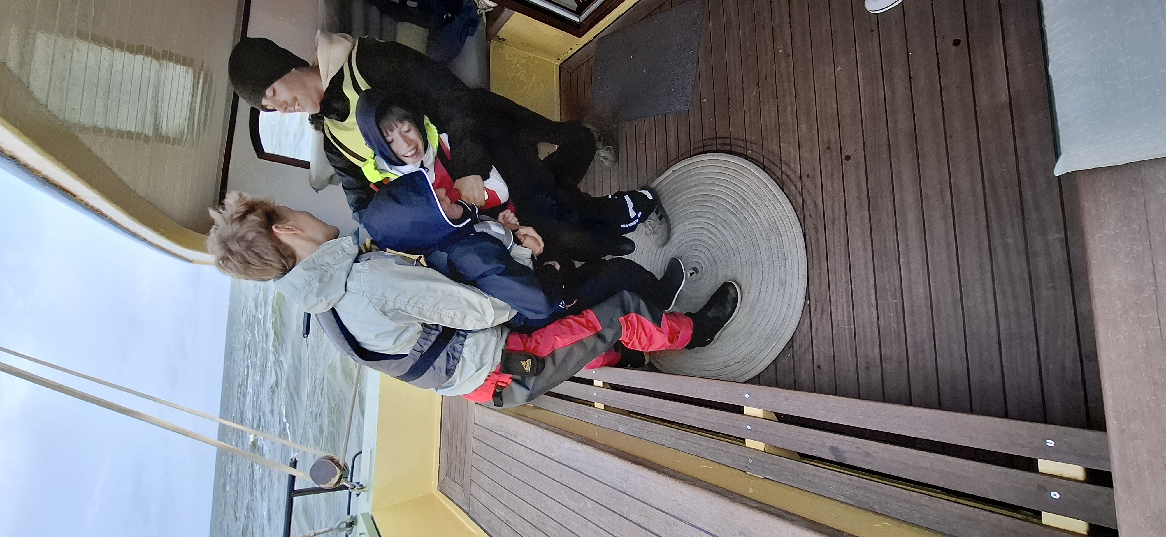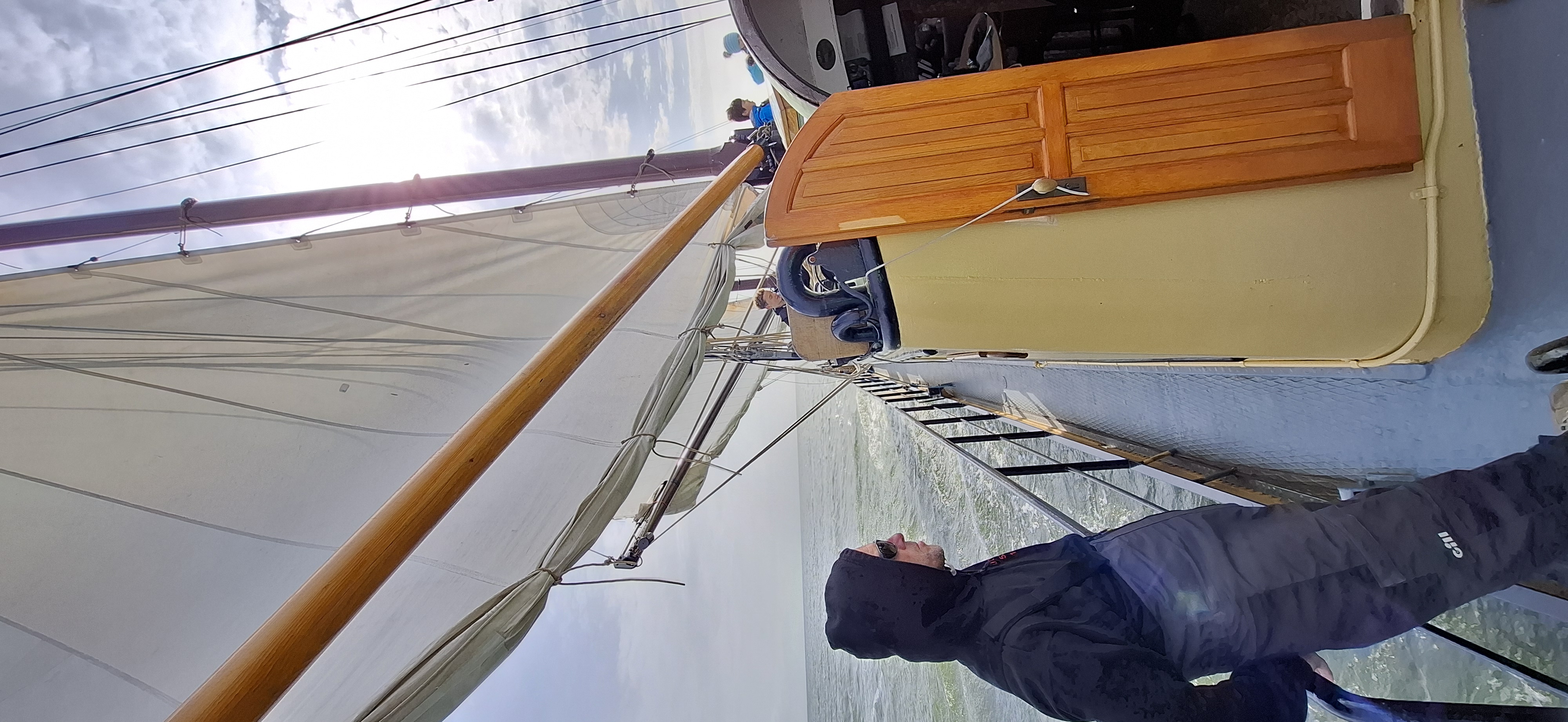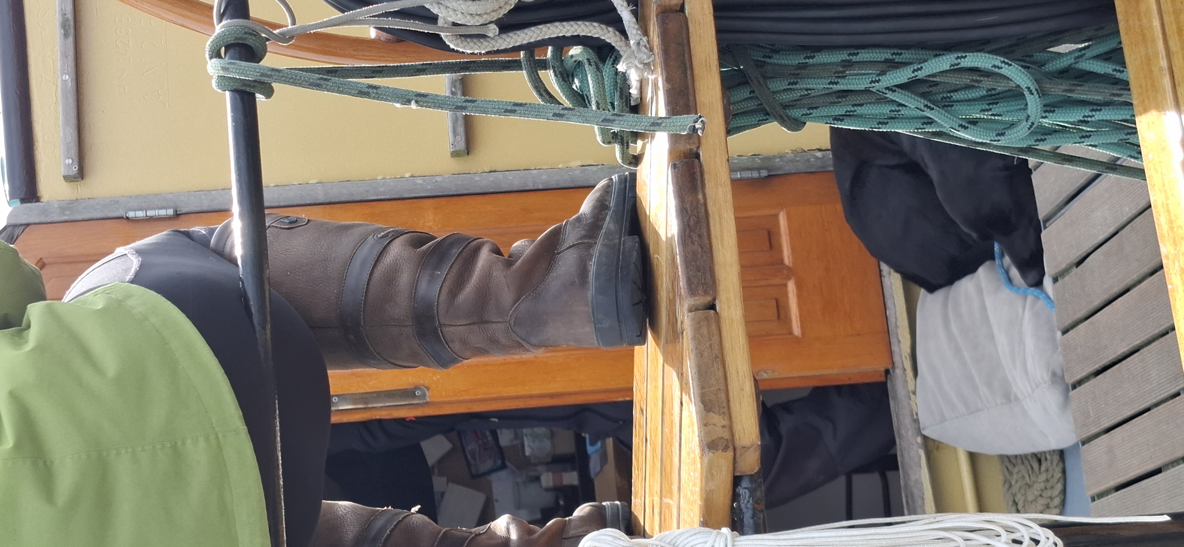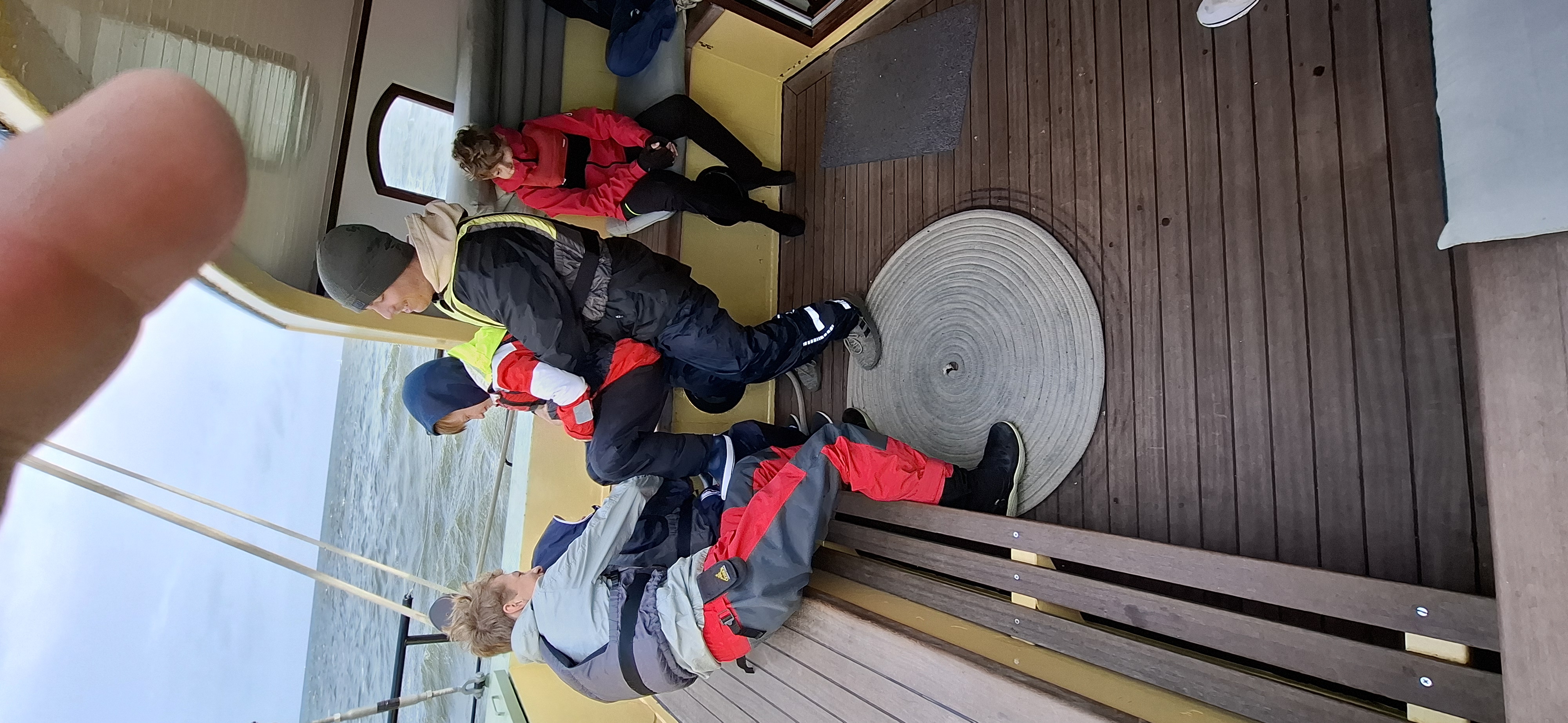 Für dieses Wetter, durchschnittlich 6 Bft mit höheren Börn, genau der richtige Kurs. Maximal konnten wir 9,5 Knoten Fahrt ablesen. Auch dank unserem heutigen Steuermann Marcel.