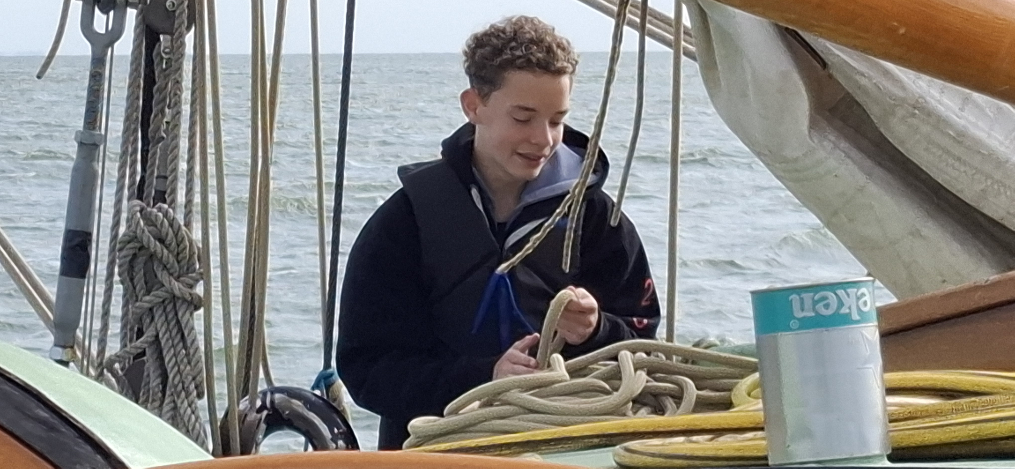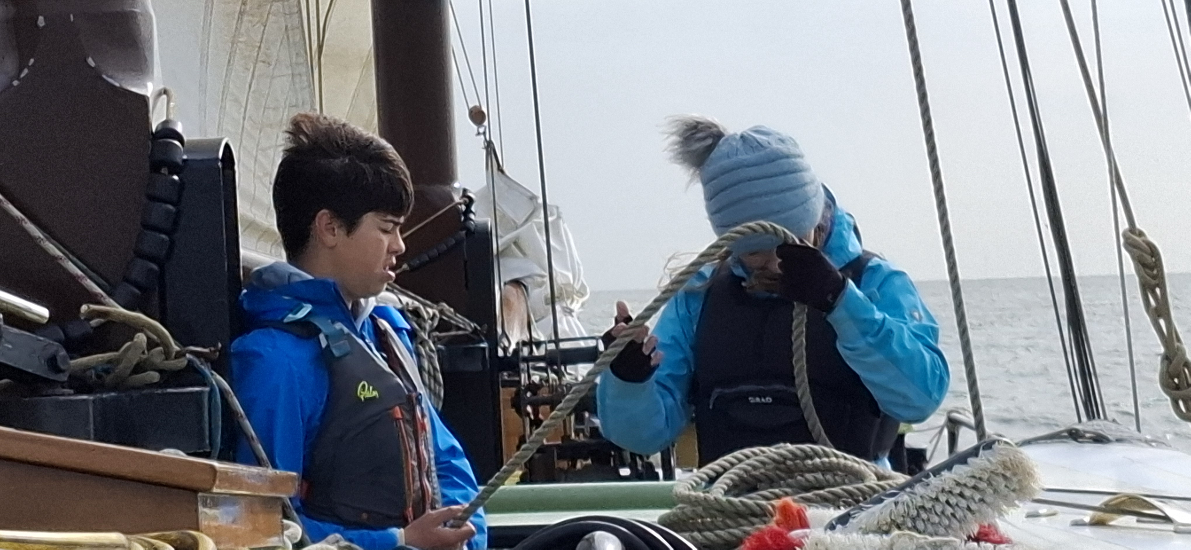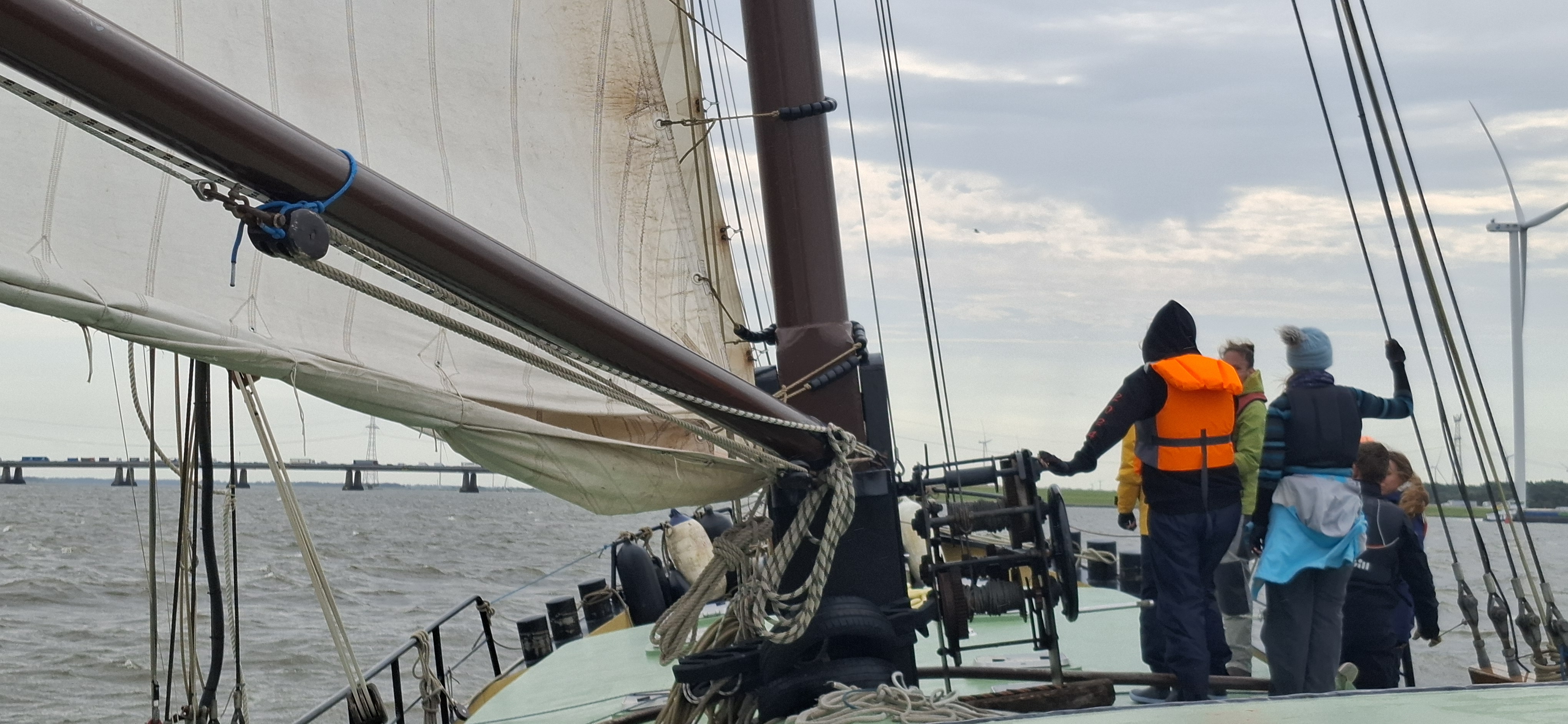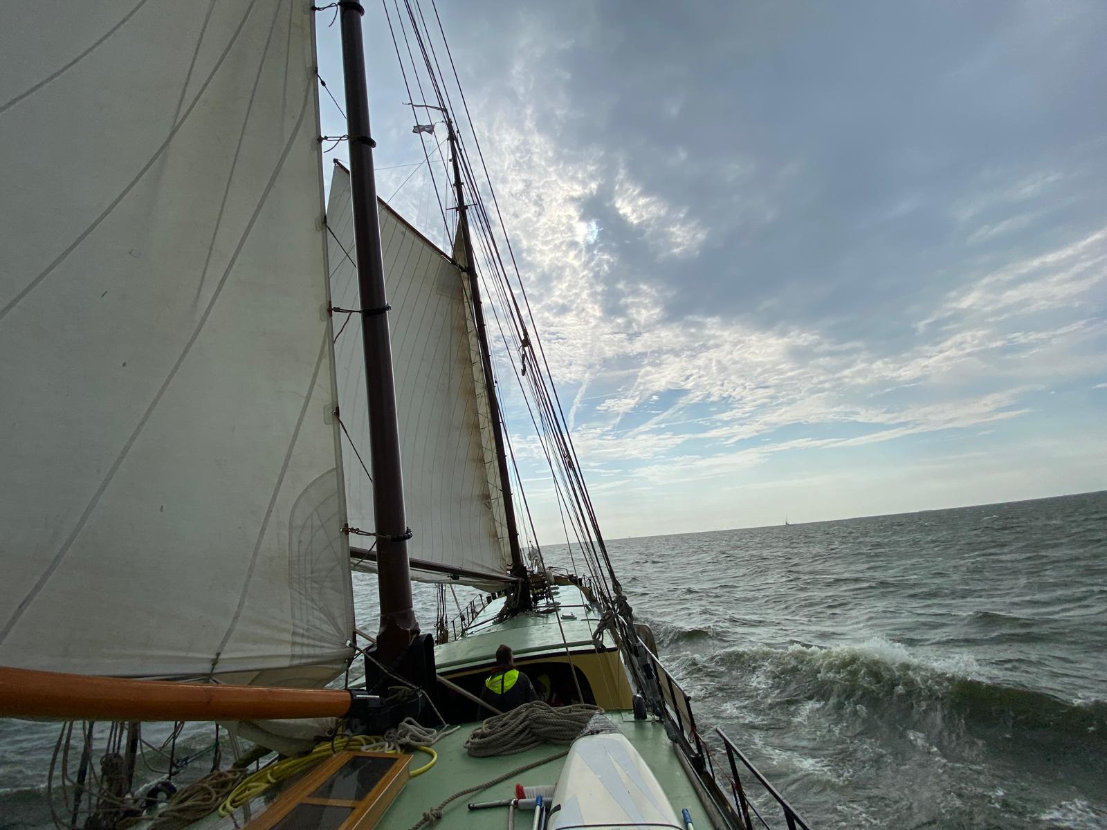 Frphstpck gab es dann um 8 und um 9:33 Uhr war auch Klaasjan abfahrbereit. Eine inzwischen sehr routinierte Crew hatte das noch immer gereffte Groß und die Fock schnell gesetzt. Dann ging es erst Richtung Enkuizen und weiter nach Südosst. Auf halbem Wege zur Ketelbrug kam auch noch der gereffte Besan dazu.