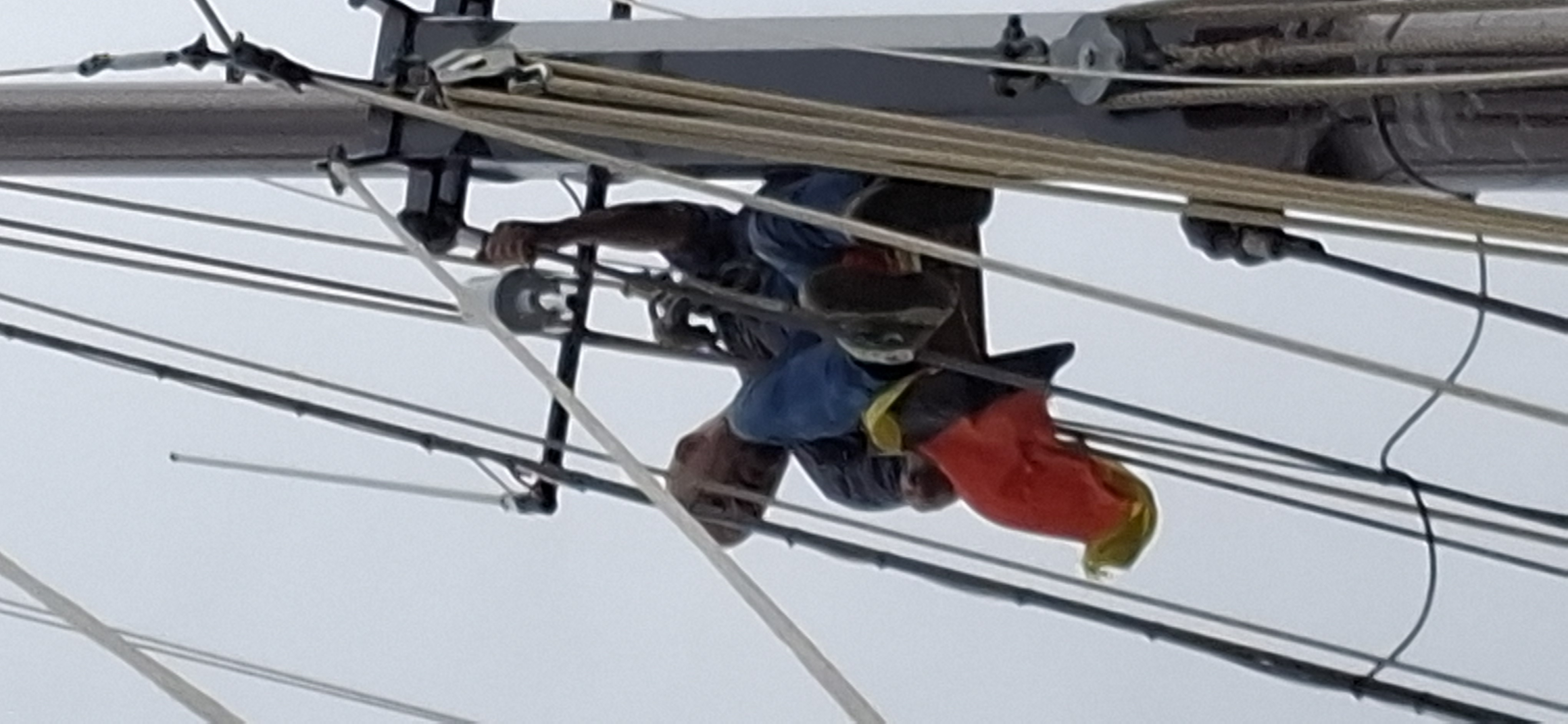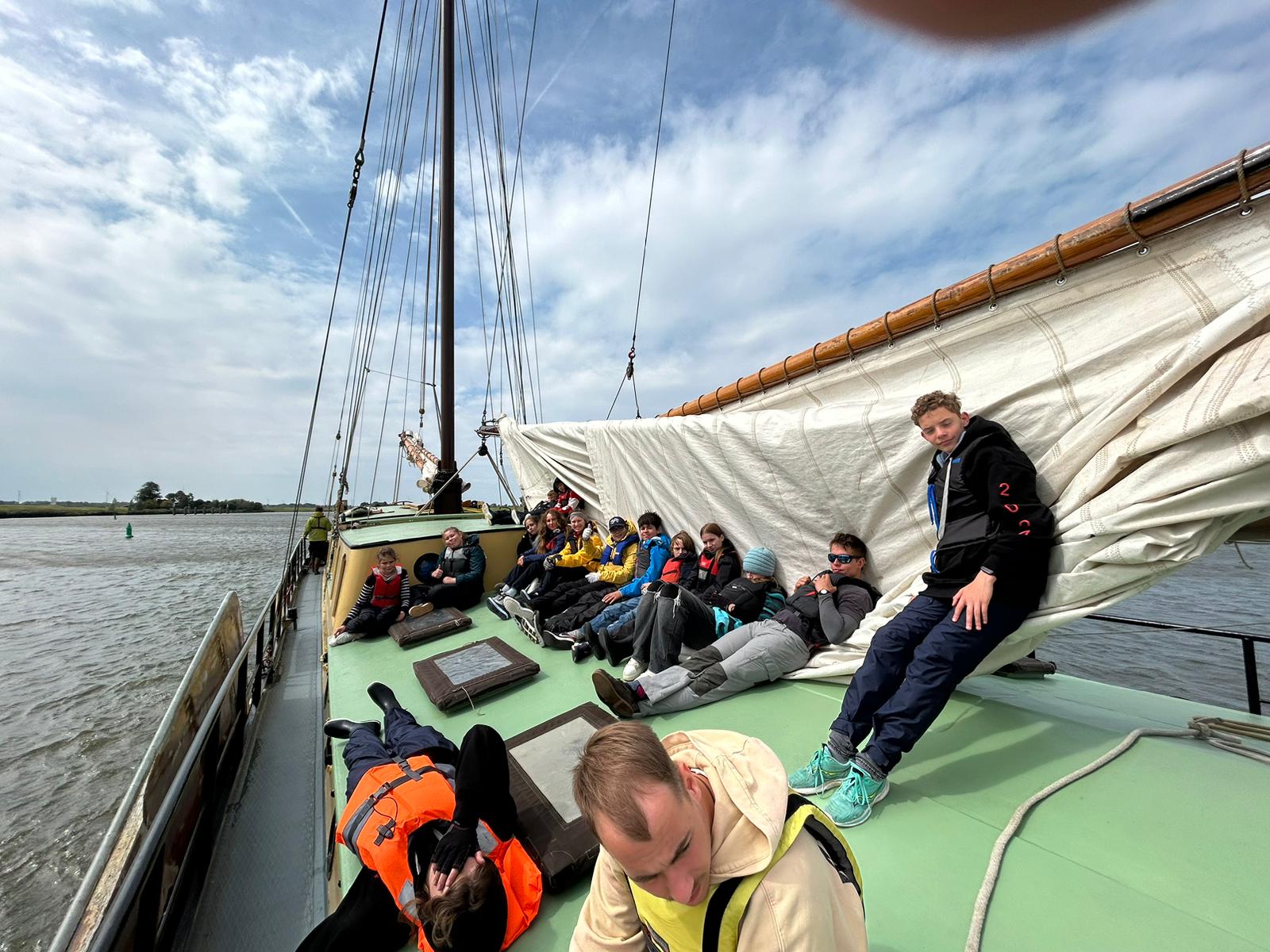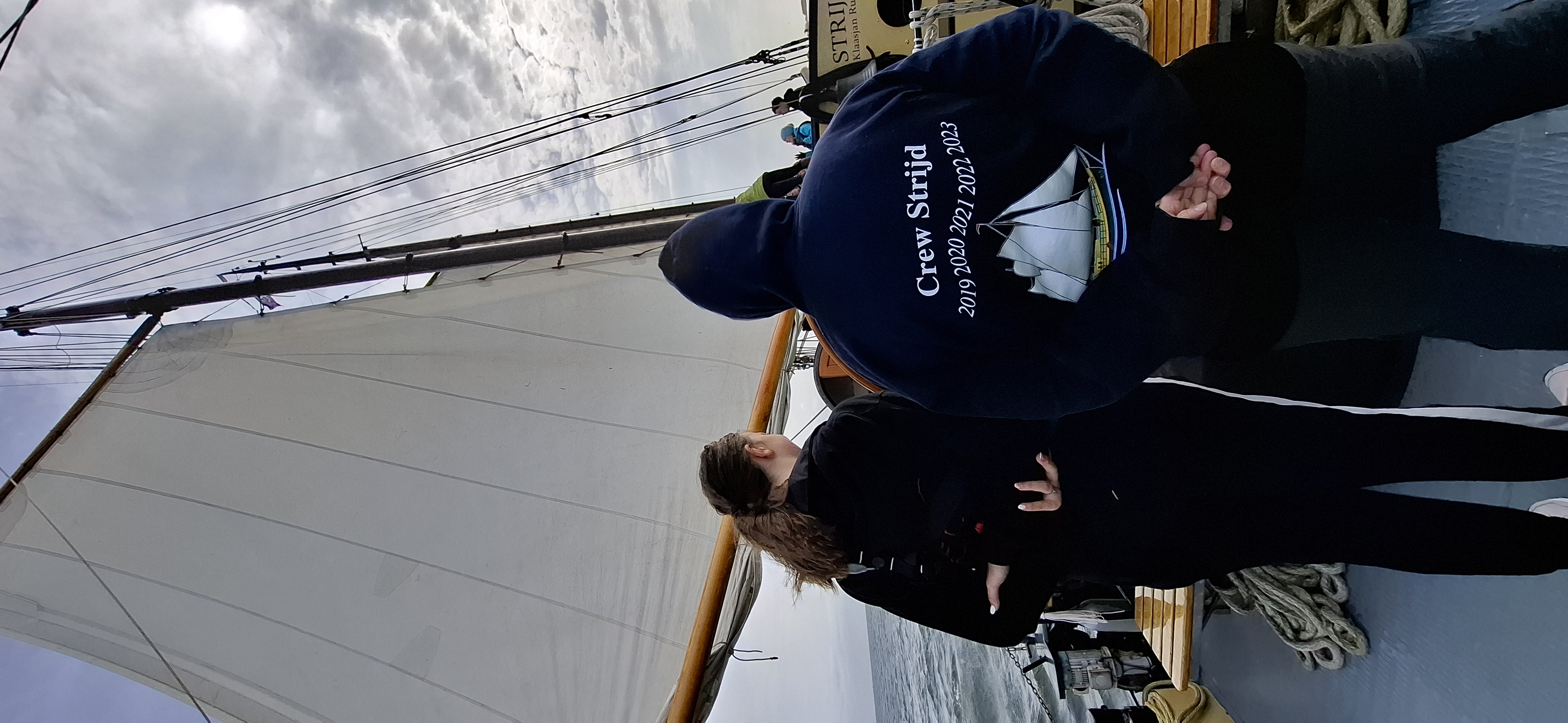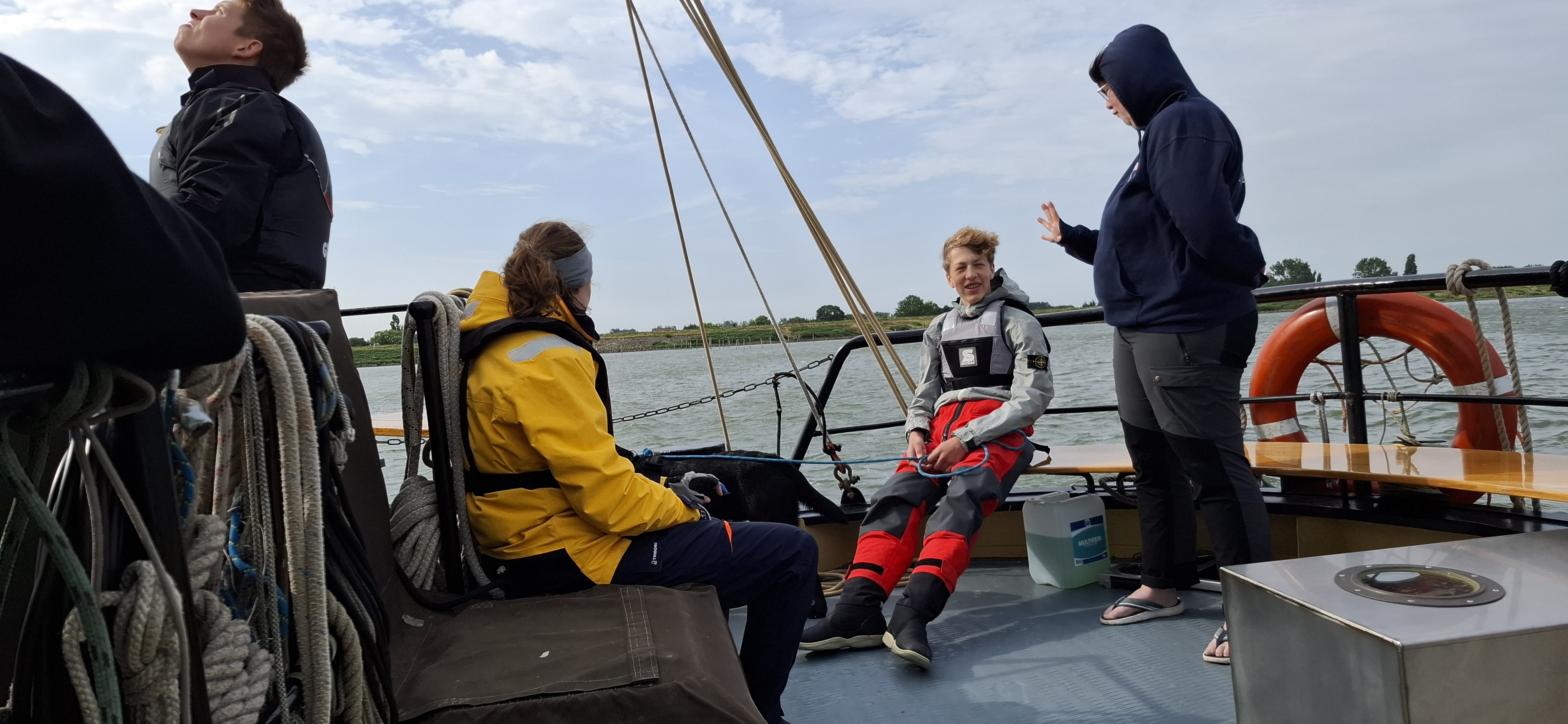 Frphstpck gab es dann um 8 und um 9:33 Uhr war auch Klaasjan abfahrbereit. Eine inzwischen sehr routinierte Crew hatte das noch immer gereffte Groß und die Fock schnell gesetzt. Dann ging es erst Richtung Enkuizen und weiter nach Südosst. Auf halbem Wege zur Ketelbrug kam auch noch der gereffte Besan dazu.