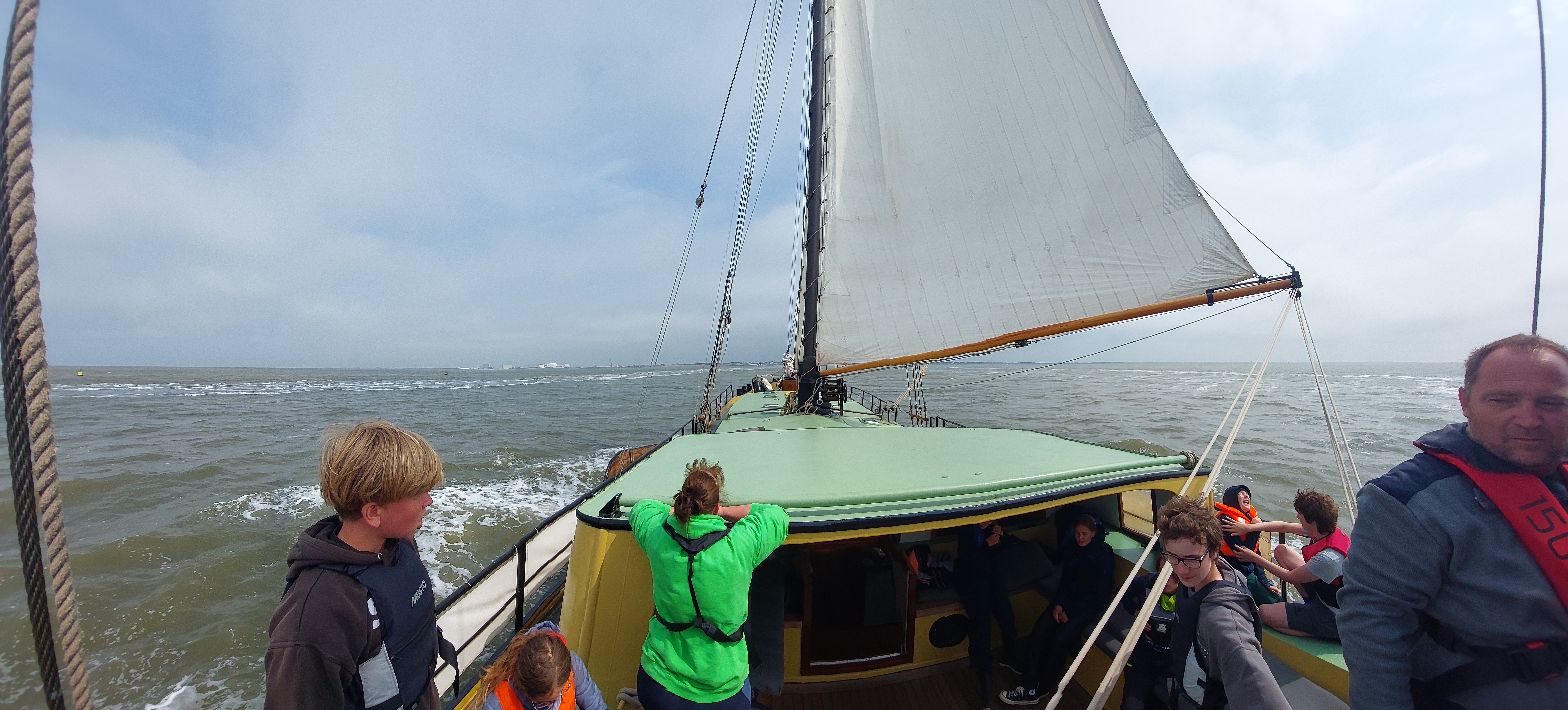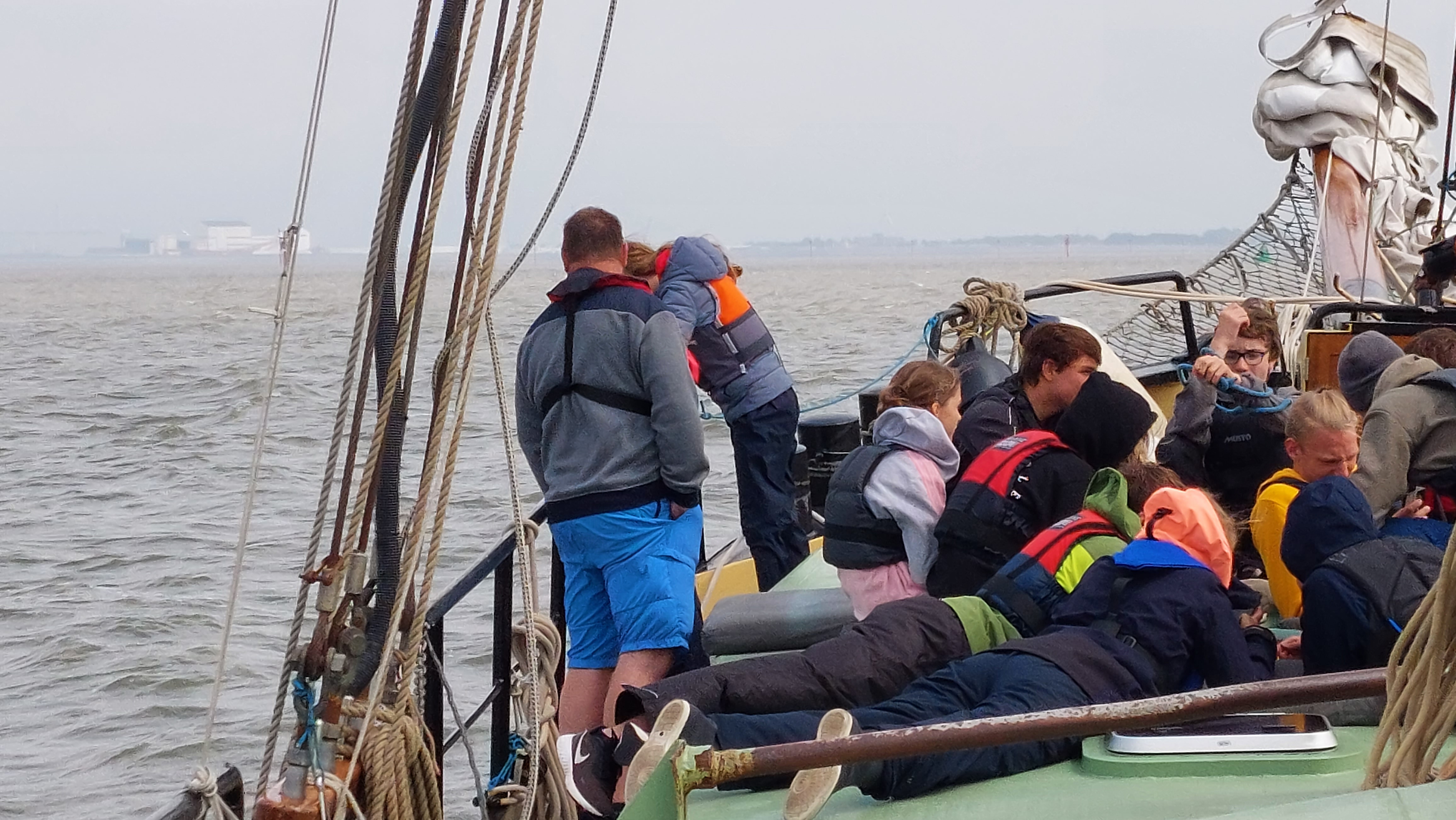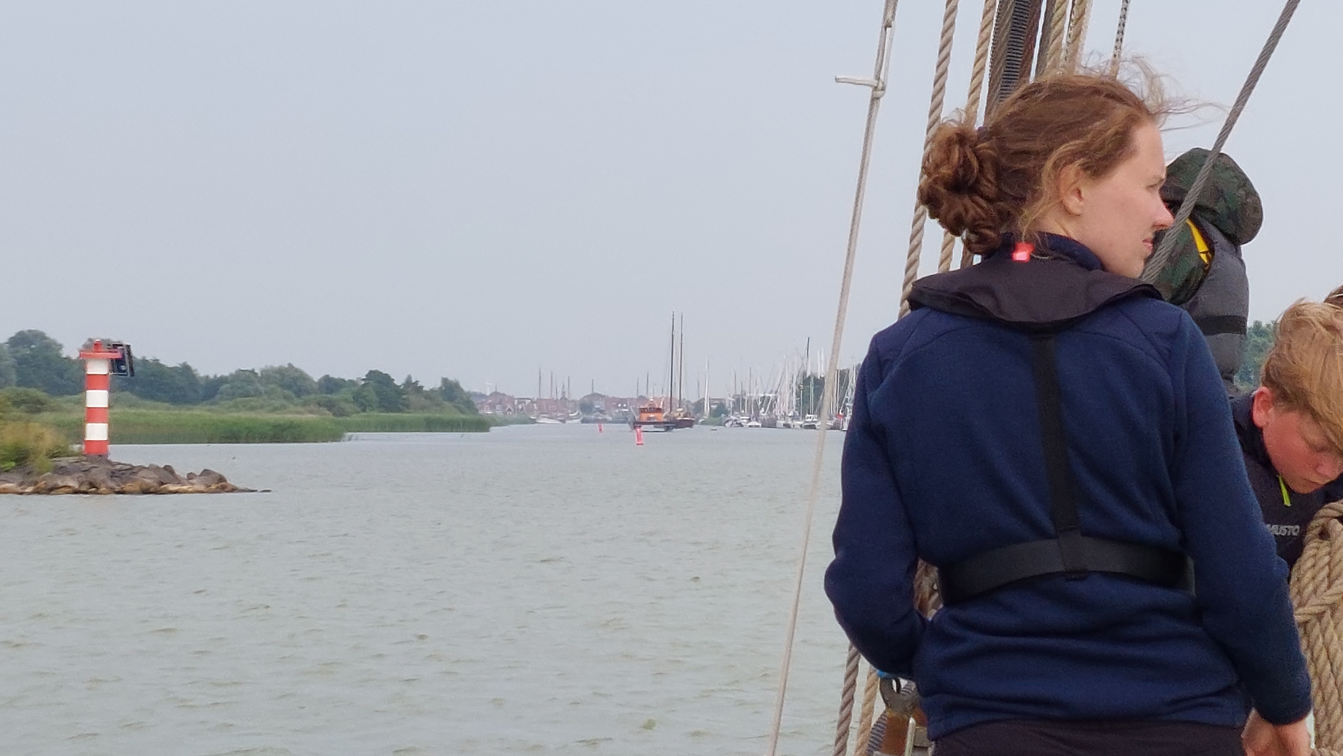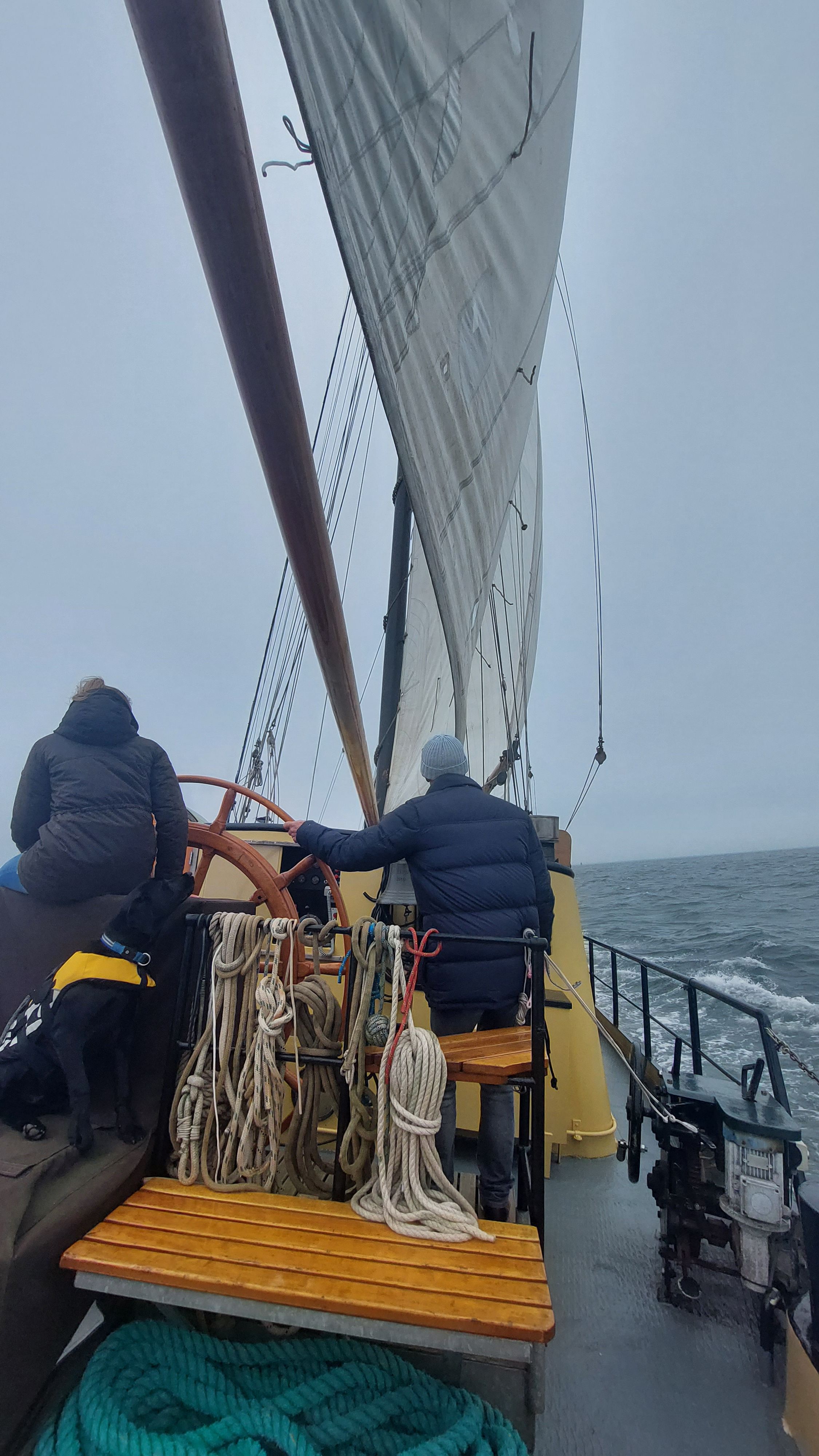 Es war ein supertoller Segeltag. Zwar noch immer diesig, aber wir hatten steten raumen und achterlichen Wind bei 4-5. Die auflaufende Tide gab und noch Extra-Schub.. Daher waren wir viel Schneller am Ziel als erhofft.