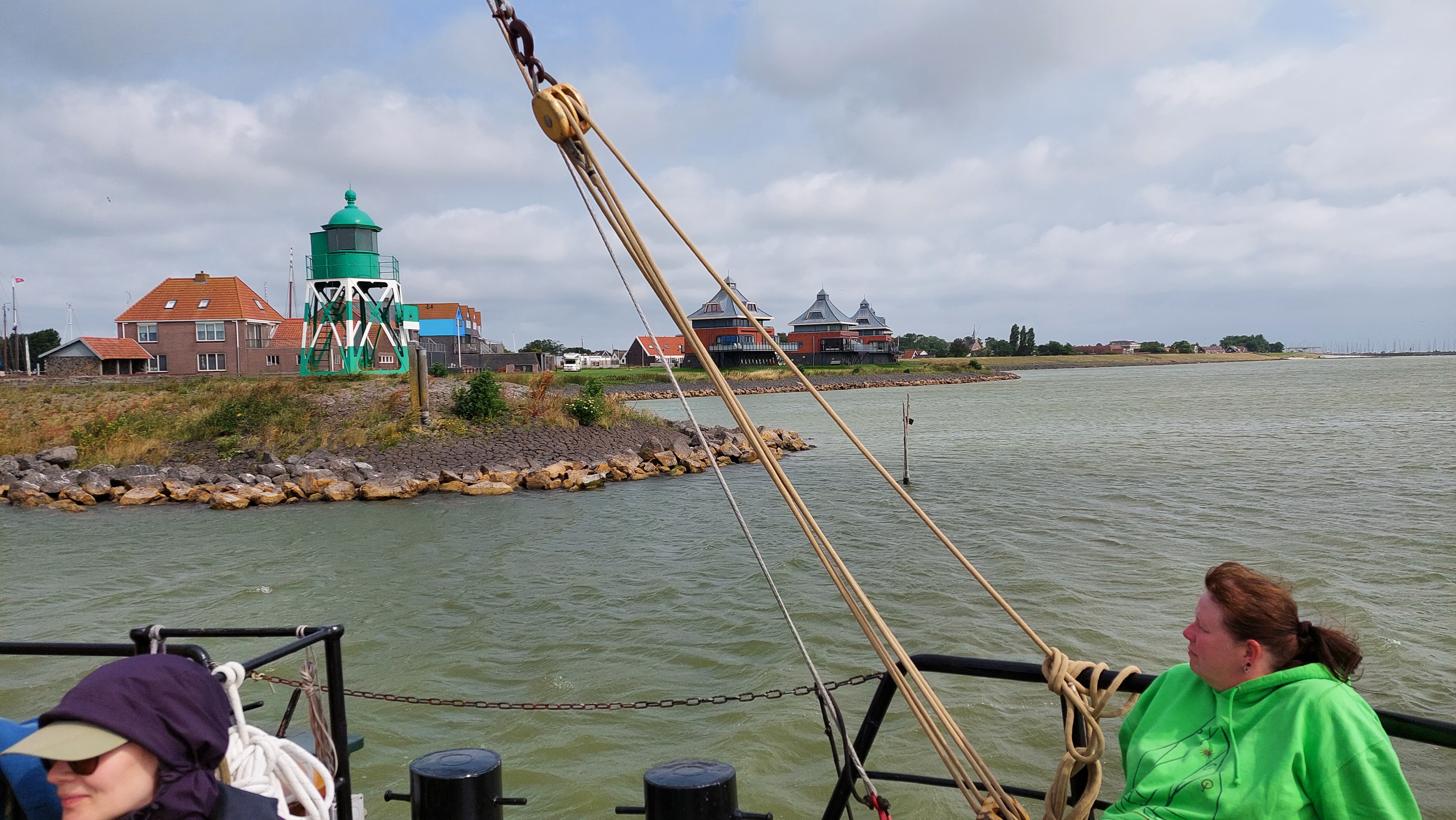Noch im Vorhafen wurden Fock und Groß (mit Reff) gesetzt und es ging vor dem Wind zurück zum Aflutdijk. Die Schleusenkammer war schon offen, so daß auch hier keine Wartezeit notwendig war.