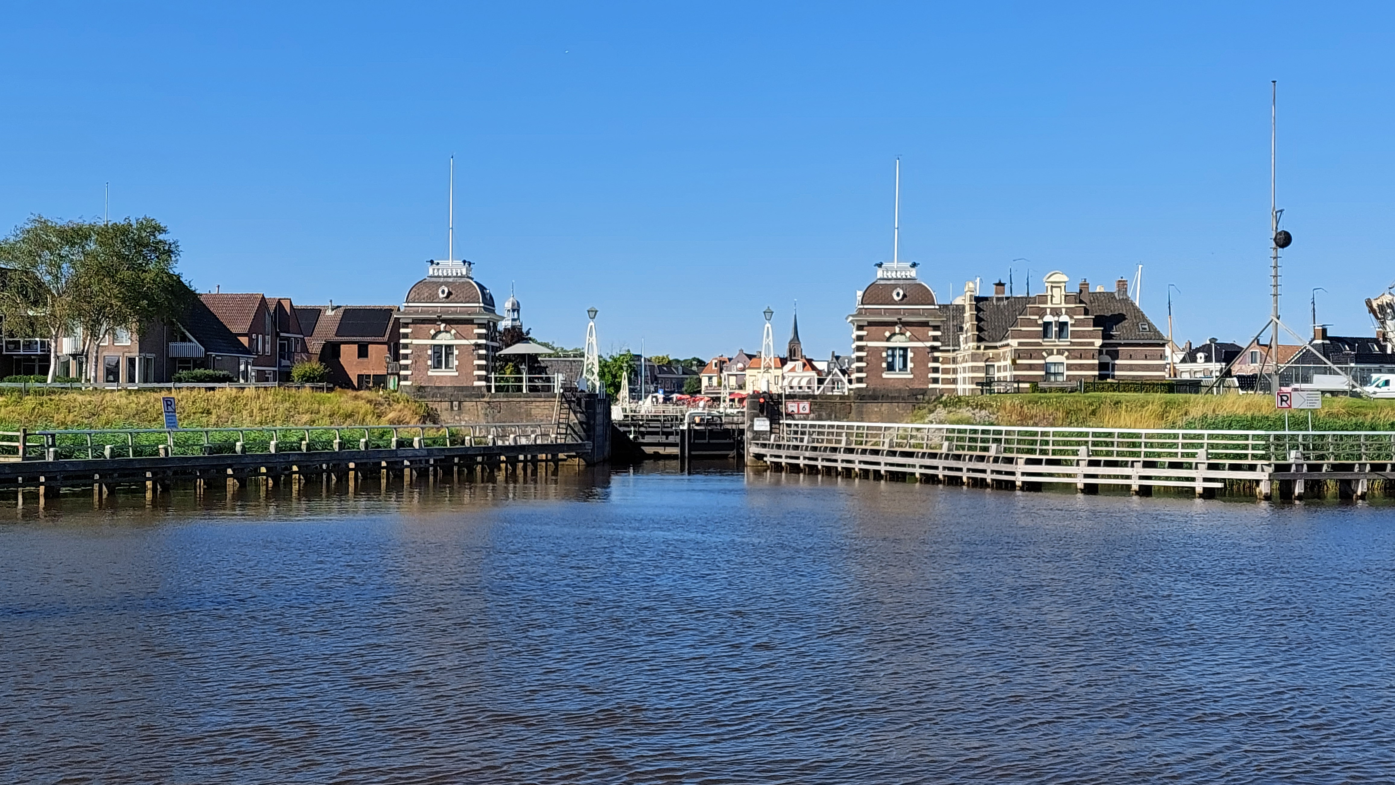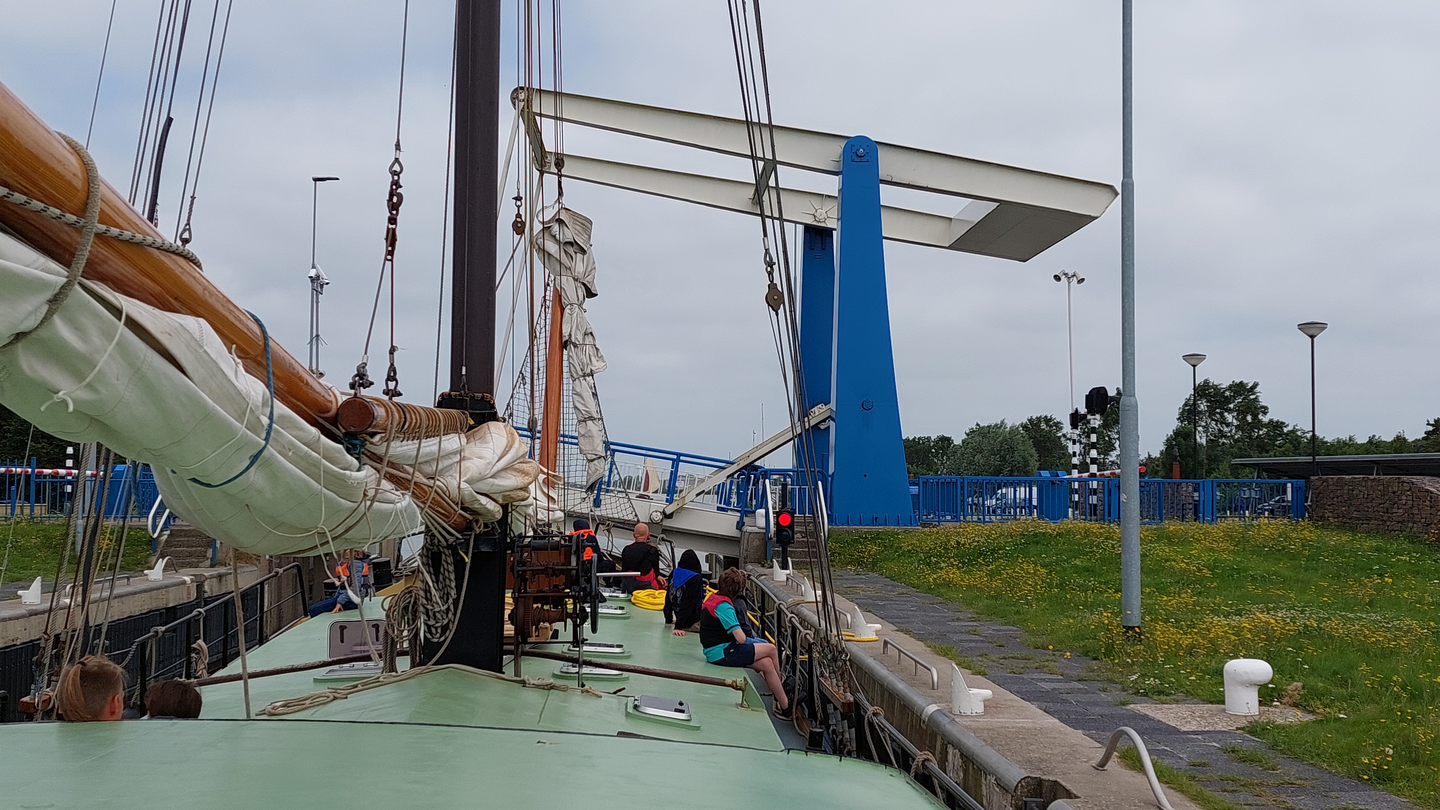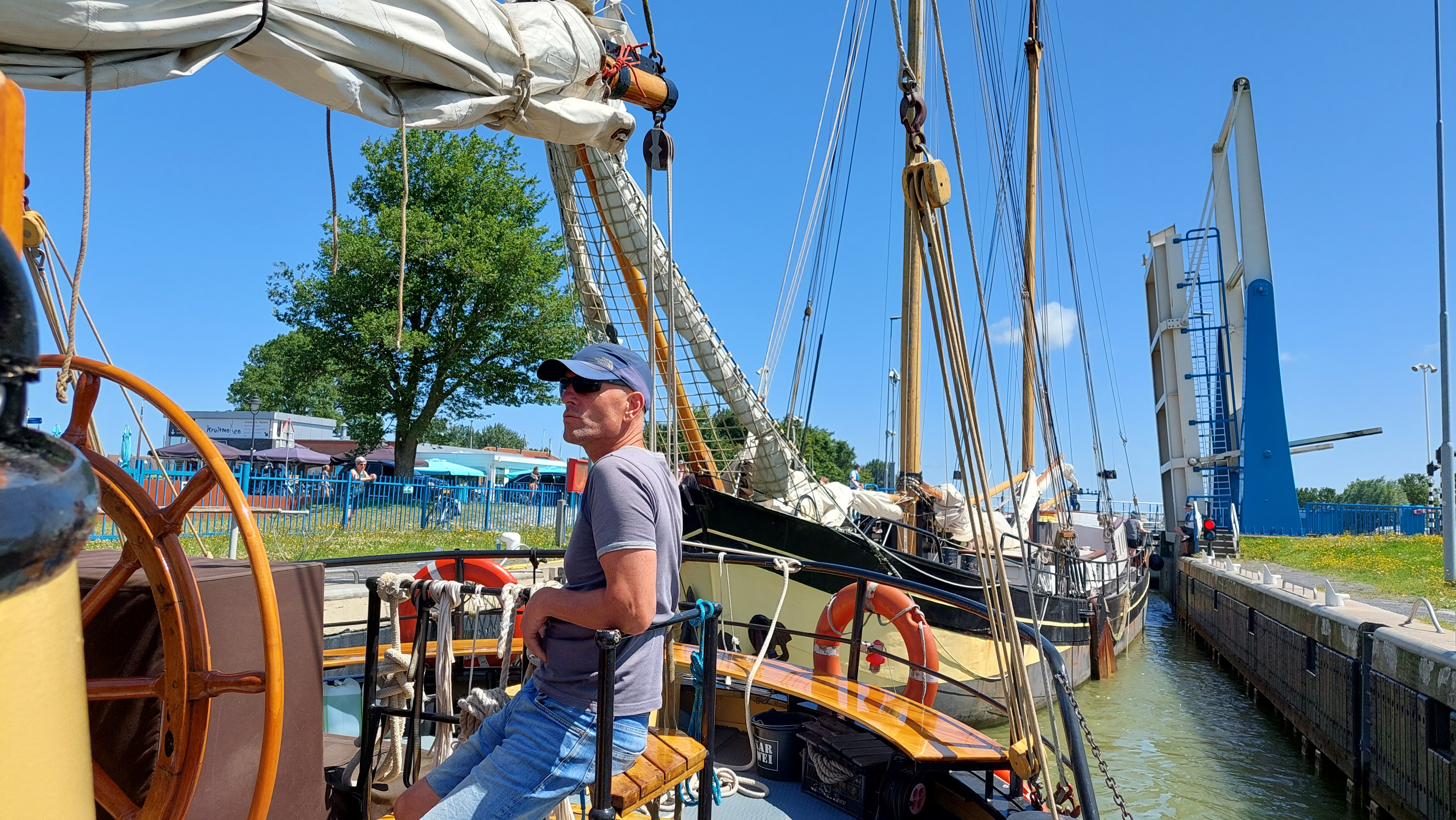 In der kleinen Schleuse war trijd die Publikumsattraktion. Dann noch durch eine weitere Klappbrücke und alle 3 Segel kamen wieder hoch.
