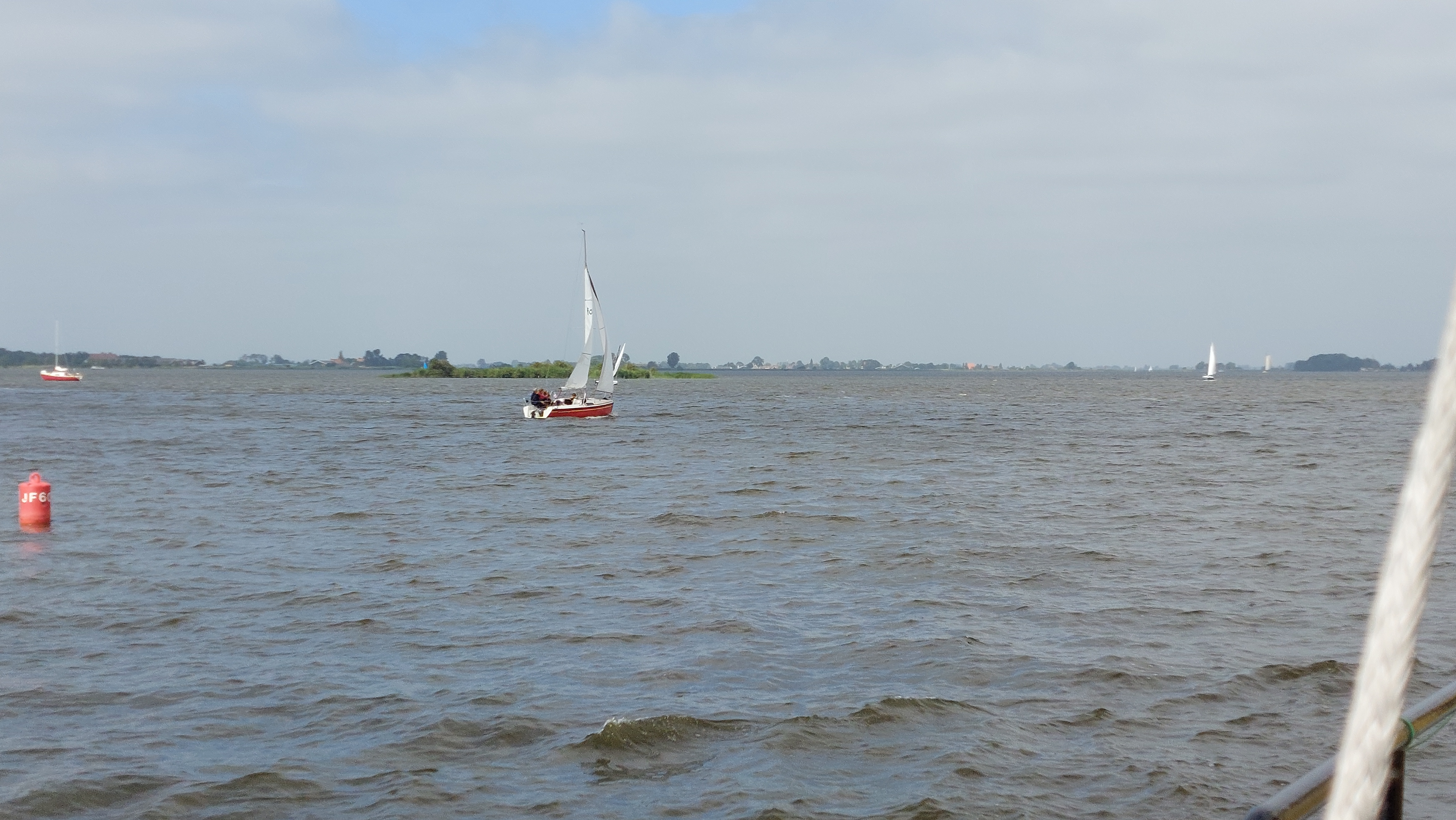 Es ging bei erst wenig, dann ordentlichem Wind unter Segen quer übers Ijsselmeer nach Makkum. Morgen geht es dann durch die Schleuse auf die Nordsee - entweder Vlieland oder Terschelling.