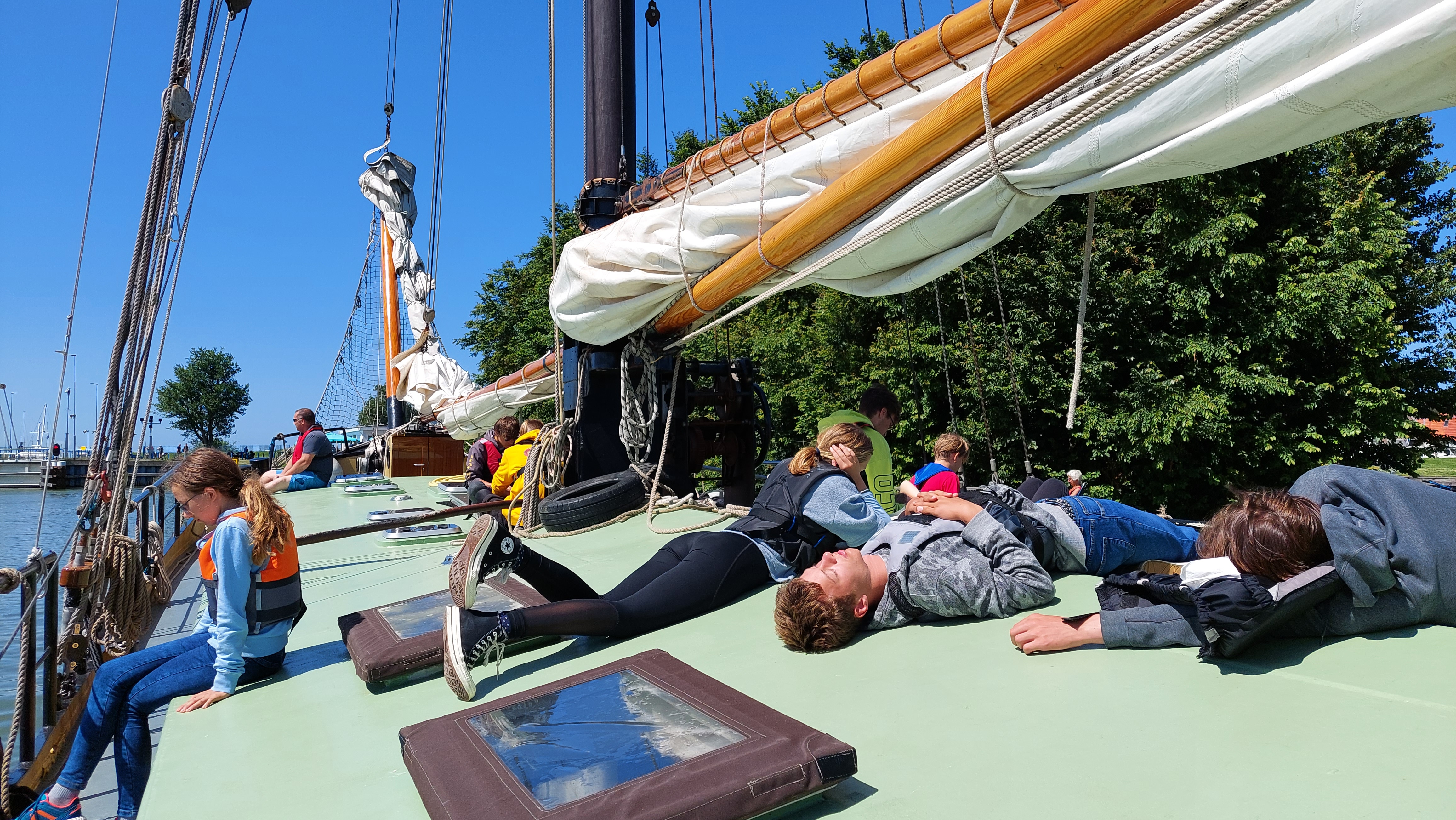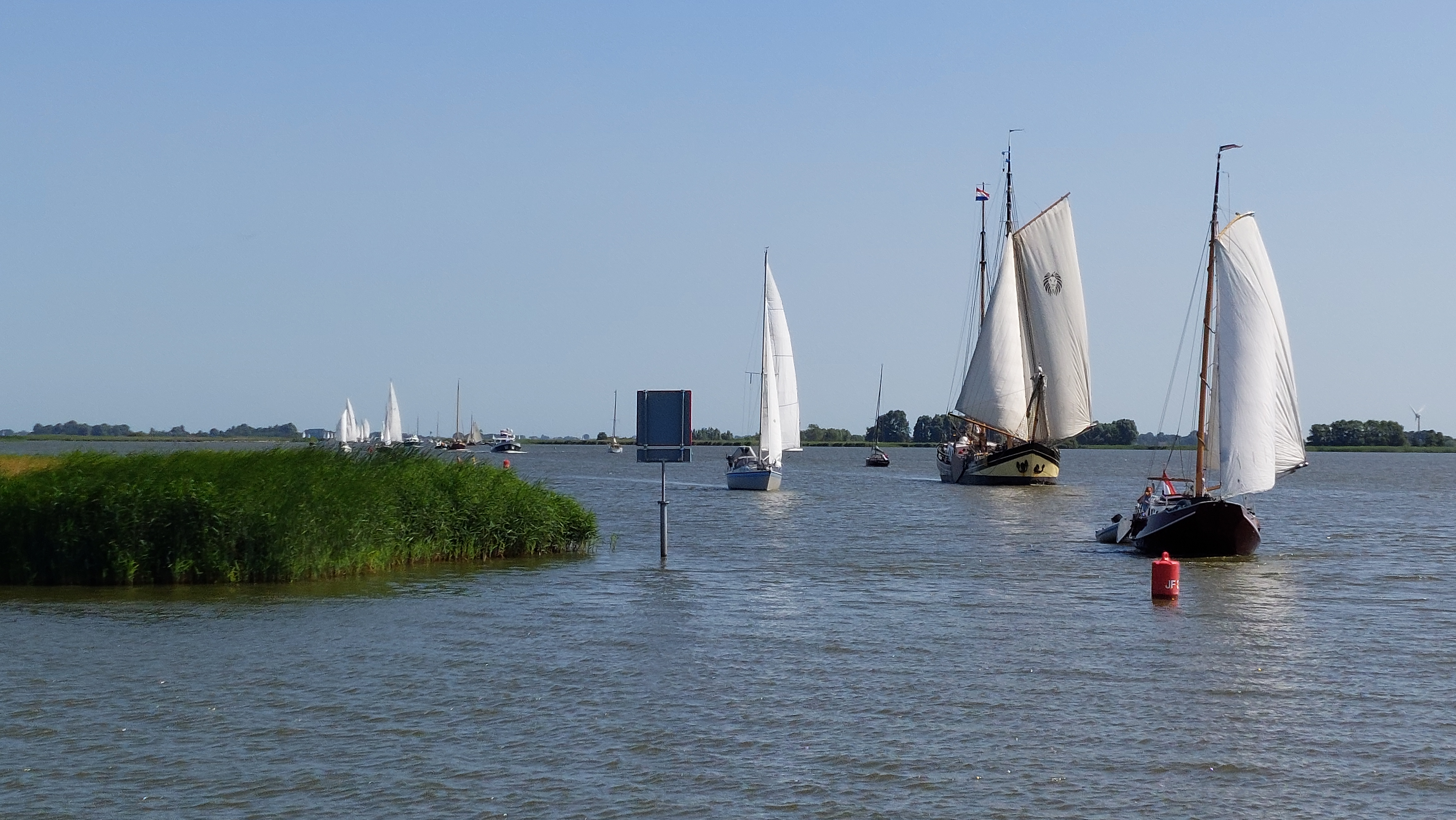 Es ging zurück durch den Jan-Frisio-Kanaal Richtung Stavoren. Natürlich unter Segeln - Fock und Groß. In der Schleuse war dann ca 15 Minuten Warten angesagt, dem Samstagsverkehr geschuldet.