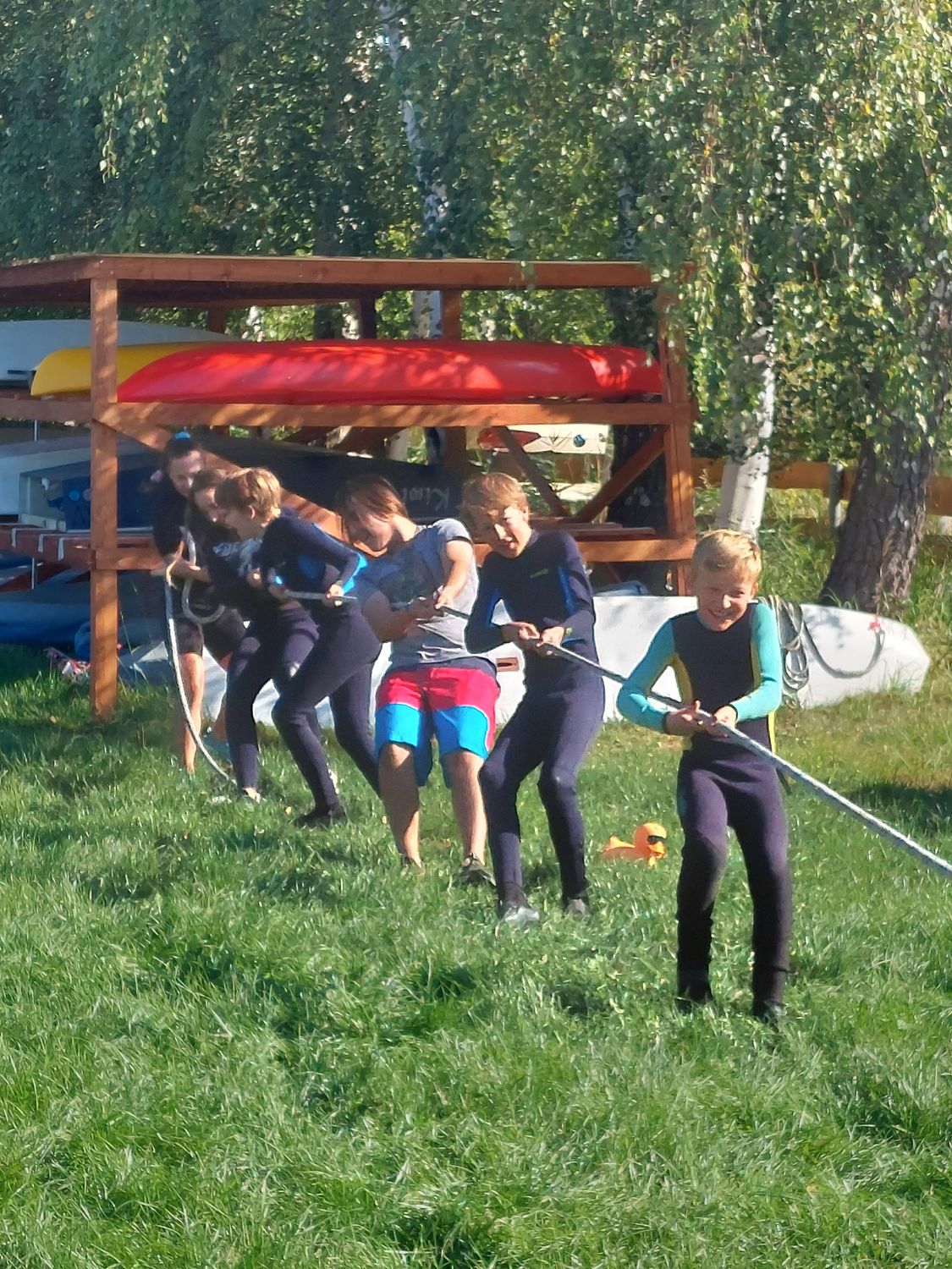 Neben Segeln standen Spiel und Spaß im Vordergrund. In 2 Teams mit den Enten-Maskottchen "Hildegard" und "Hans Wurst" mußten die Sailkids diverse Aufgabe erledigen und konnten dafür jeweils einige Teile eines Puzzles ergattern.