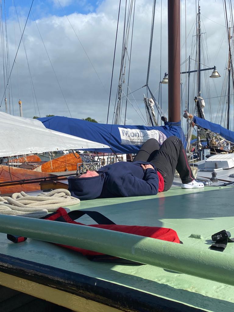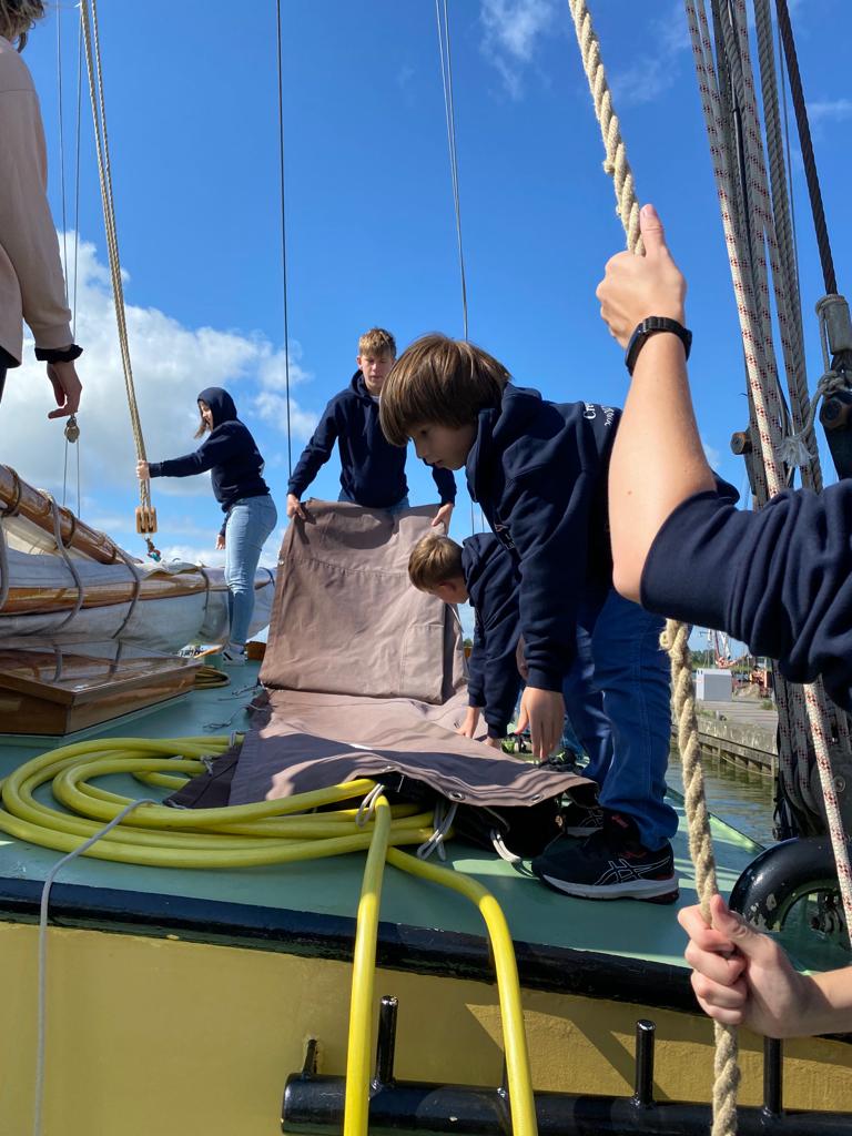 Nach der Einweisung, vor Allem für unsere Neuen, wurde vorbereitend in alle Segel (Fock, Groß und Besan) ein Reff gebunden. So konnte es gut vorbereitet losgehen.