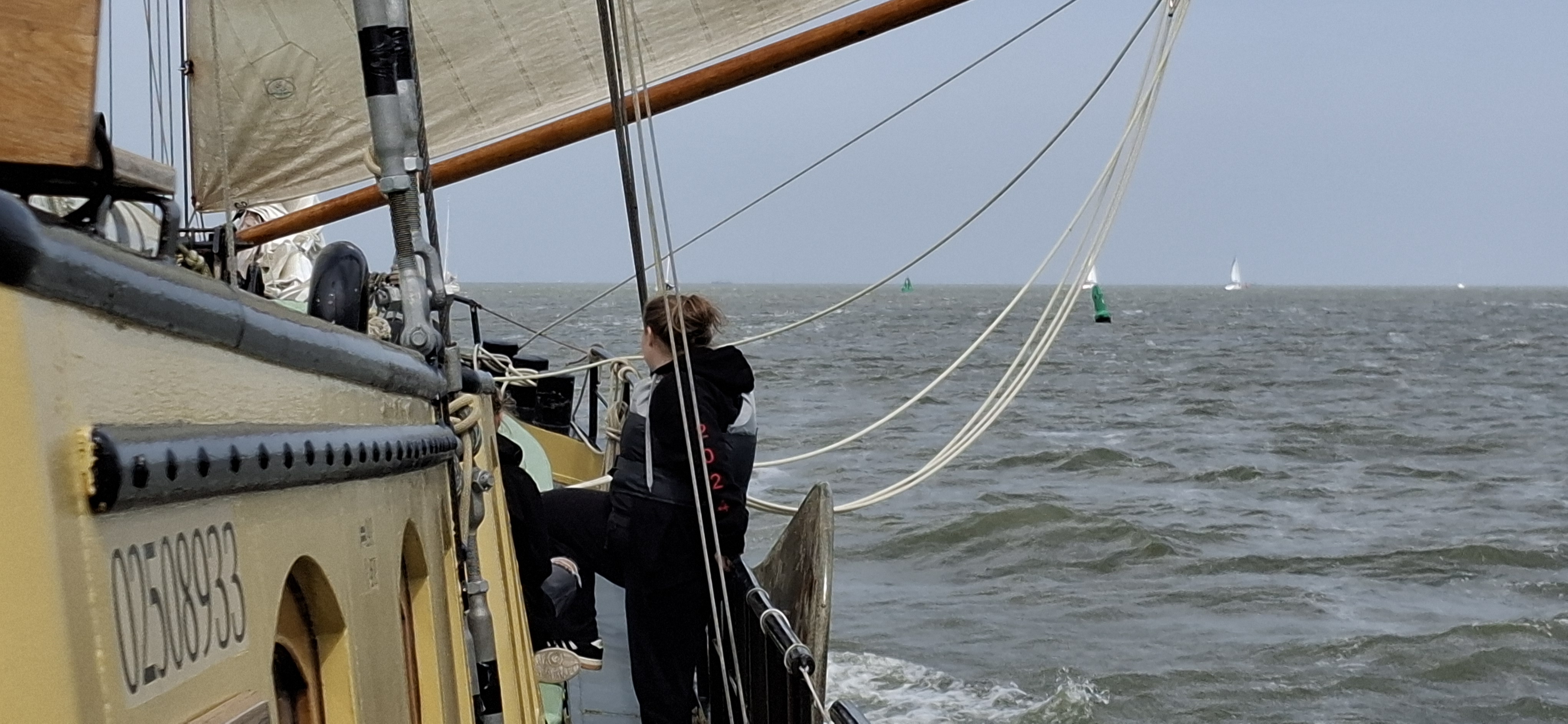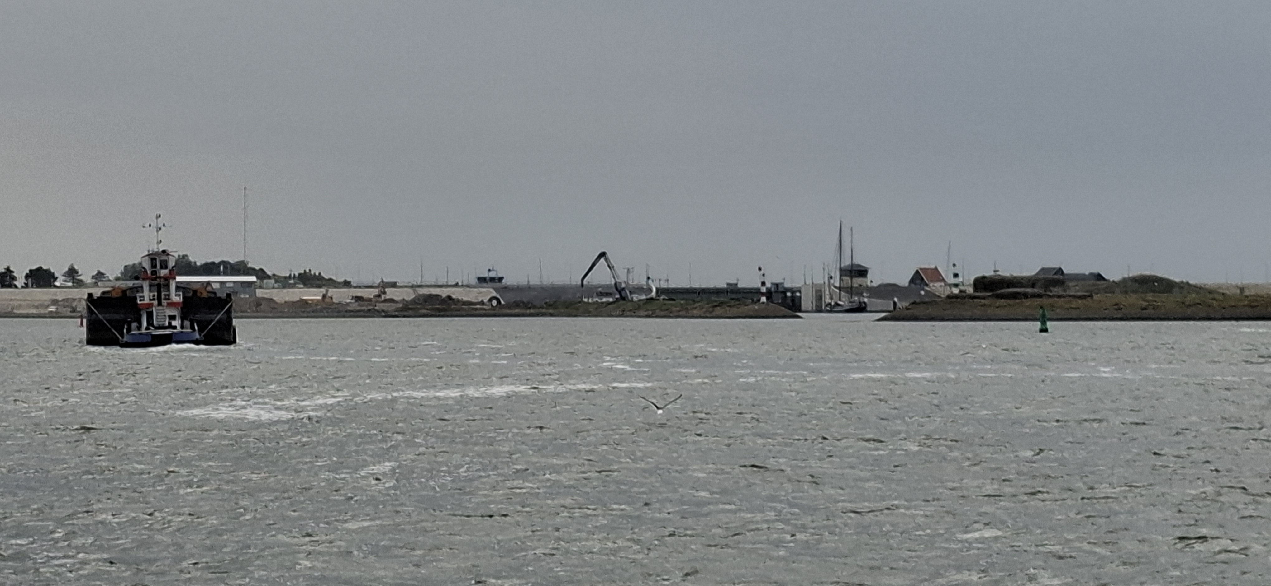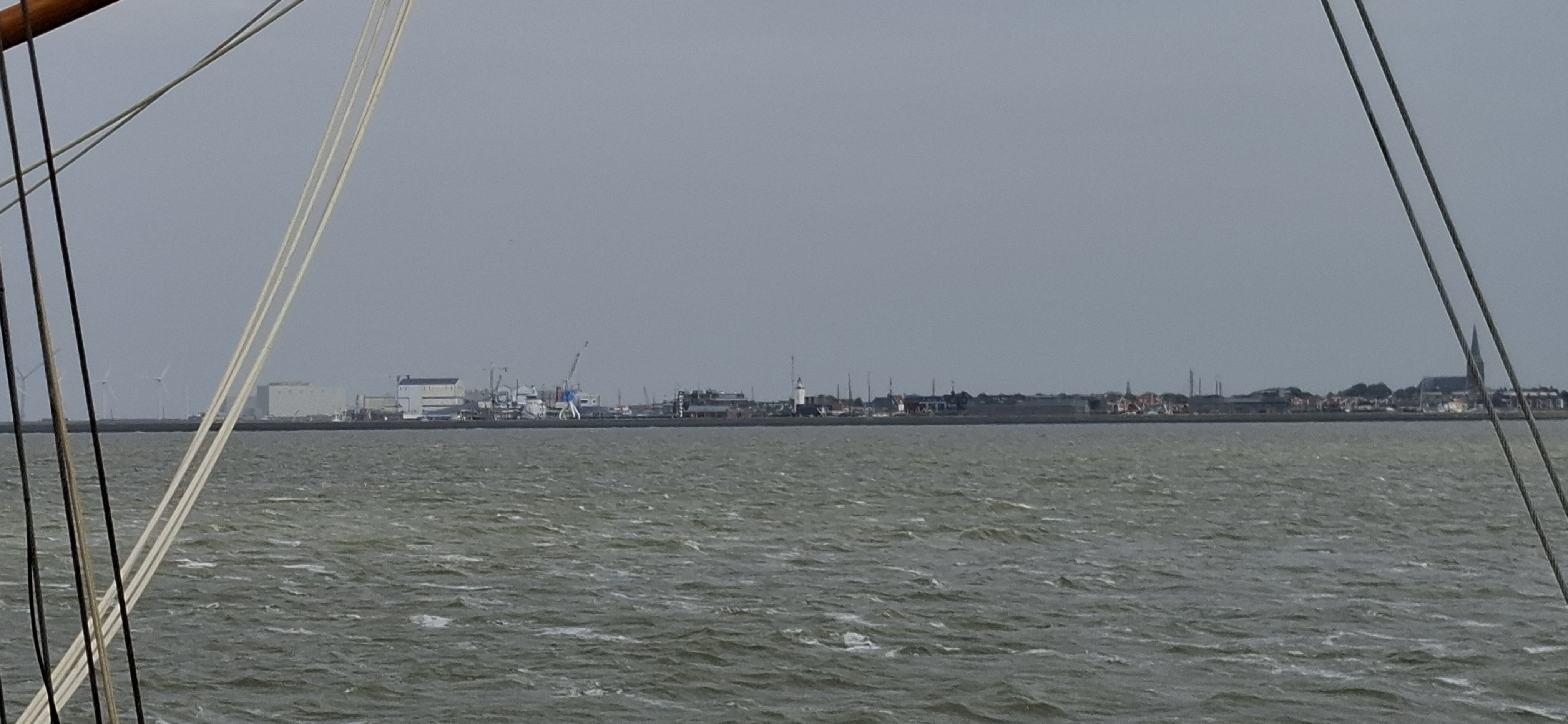Raus aus Oudeschild und Kurs Südost. Bis auf den Klüver waren alle Segel schnell gesetzt und wir konnten mit zeitweise raumem Wind und mehr als 8 Knoten Fahrt, am Abschlußdeich längs brettern, Kurs Schleuse Kornwarderzand. Von da aus mit Schmetterling wieder hoch nach Harlingen.