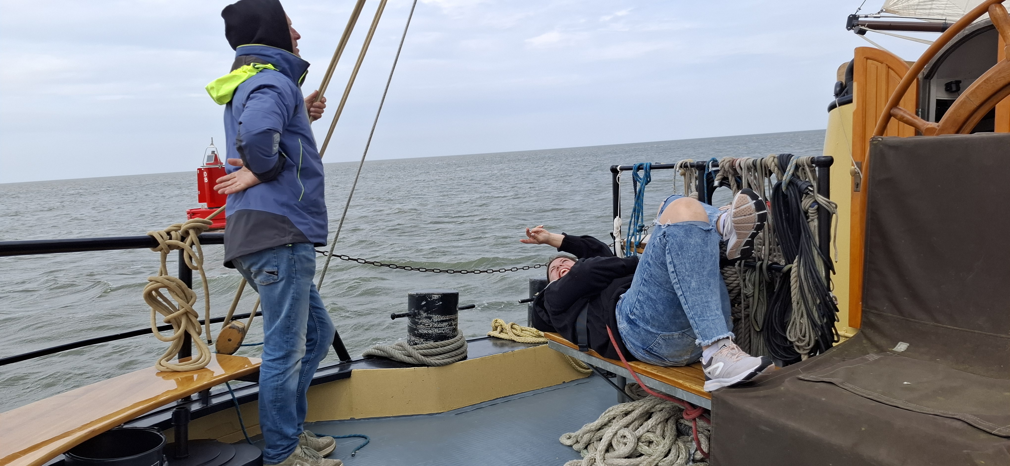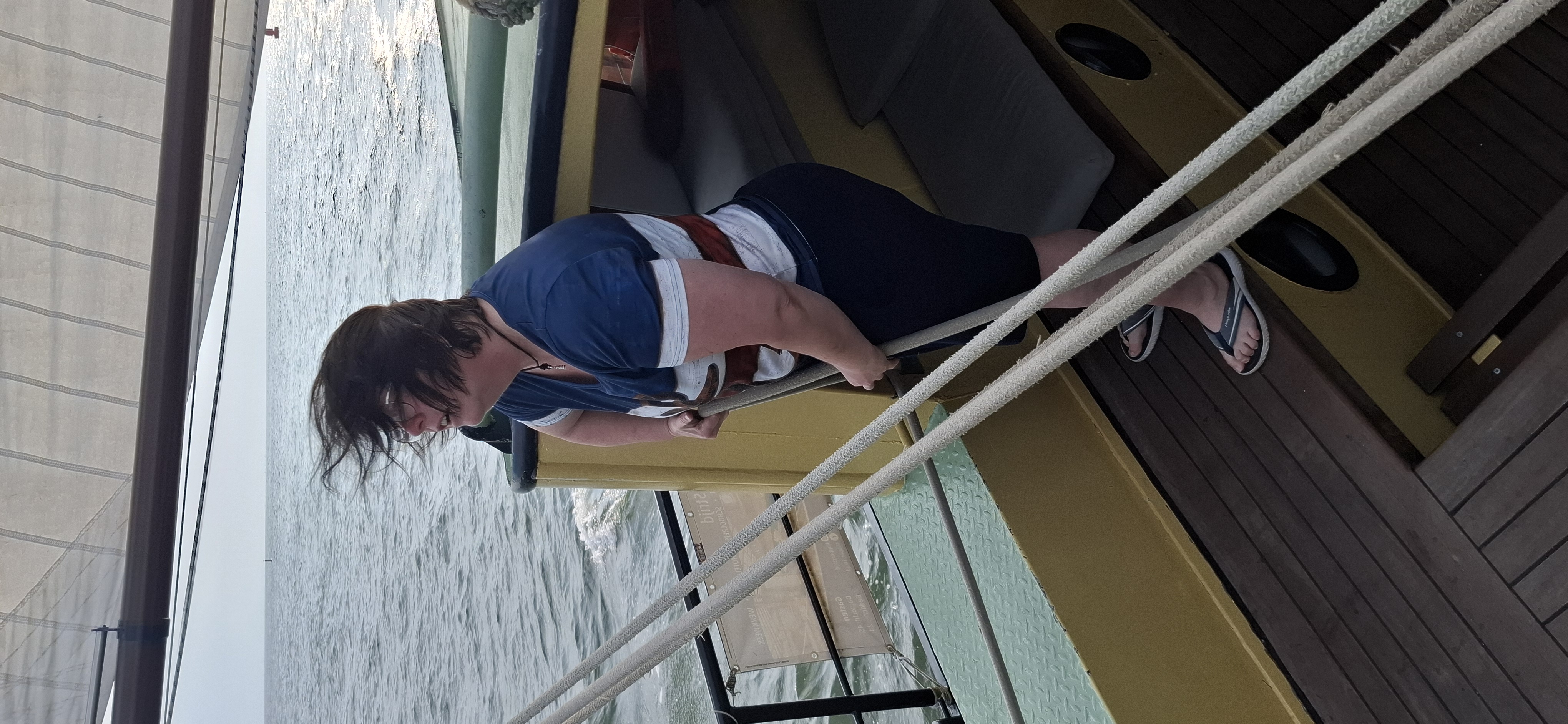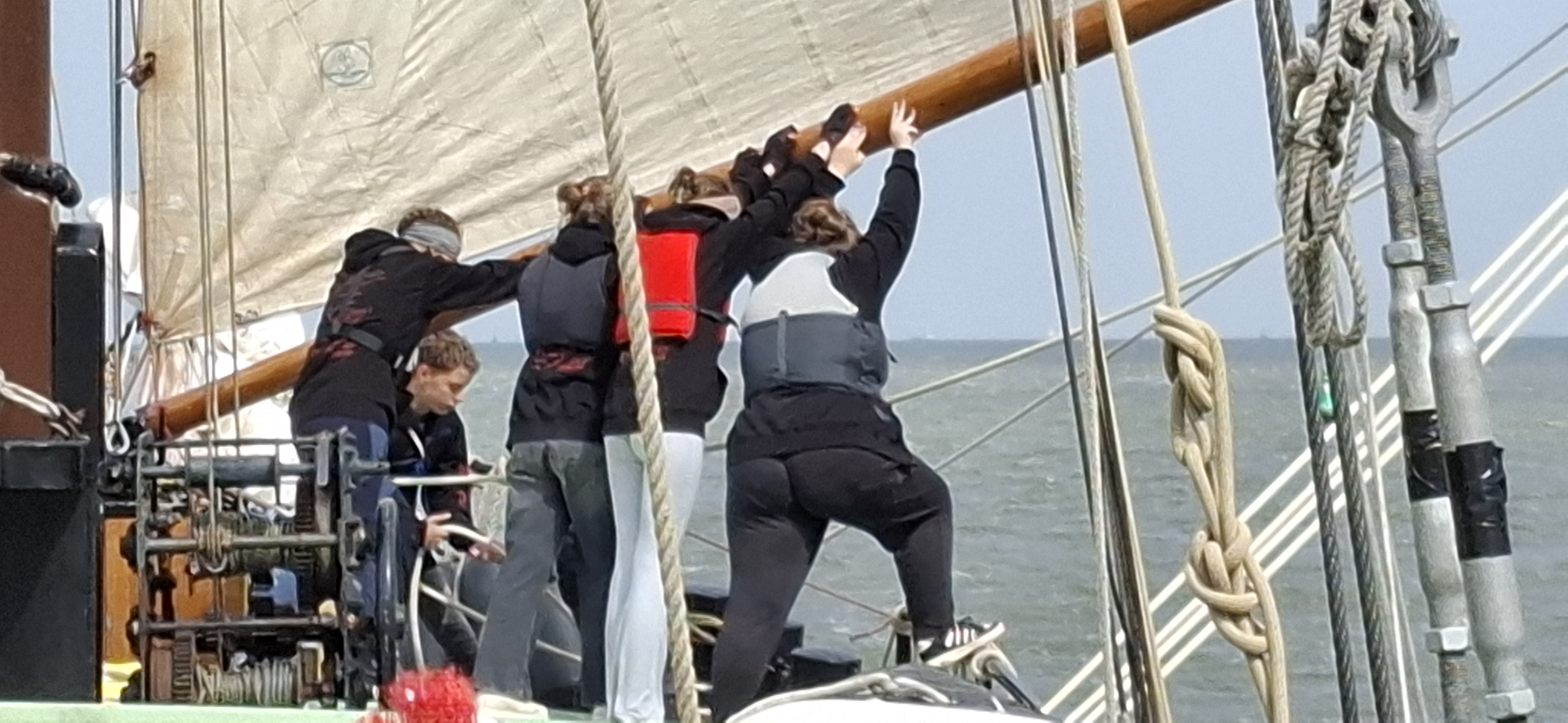 Raus aus Oudeschild und Kurs Südost. Bis auf den Klüver waren alle Segel schnell gesetzt und wir konnten mit zeitweise raumem Wind und mehr als 8 Knoten Fahrt, am Abschlußdeich längs brettern, Kurs Schleuse Kornwarderzand. Von da aus mit Schmetterling wieder hoch nach Harlingen.