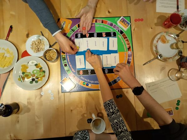 Doch zuerst Ratlosigkeit: Wie sollen wir all diese Spiele denn nur wegspielen und mit welchem fangen wir an? Schließlich entschieden wir uns für eine Mischung aus Kartenspiel und Stadt-Land-Fluss in der Rotlicht Edition und lernten so ziemlich schnell eine ganze Menge darüber wie die Mitspieler*innen denken. An dieser Stelle darf die Fantasie frei ergänzen, was uns durch den Kopf gegangen sein mag. Nur soviel das Atmen fiel schwer beim vielen Lachen. Um nicht ganz zügellos zu werden schwenkten wir auf ein Schätzspiel um, dass uns in eine Welt von Geparden die 50km Sprinten, Pinguinen die über Häuser springen und einem Eifelturm mit der Masse eines mittleren Schwarzen Loches entführt hat. |