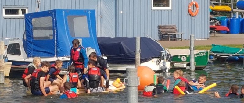 Weiterhin galt es noch Baumaterial für eine Floßfahrt zu "erarbeiten", 2 Flöße so stabil zusammenzubauen, daß die Teams weitere Aufgaben auf der Wakenitz und dem Piraten-Camp erfolgreich lösen konnten und die Nacht im Zelt zu verbringen.